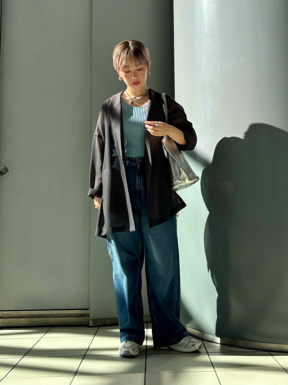 今の時期はTシャツの上にちょうどいいです。羽織るだけでカチッとした印象に変わるのでお仕事用にもおすすめです。