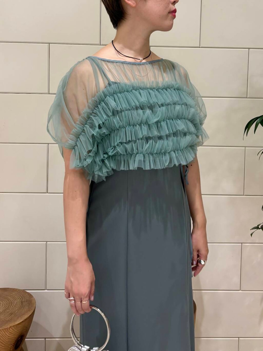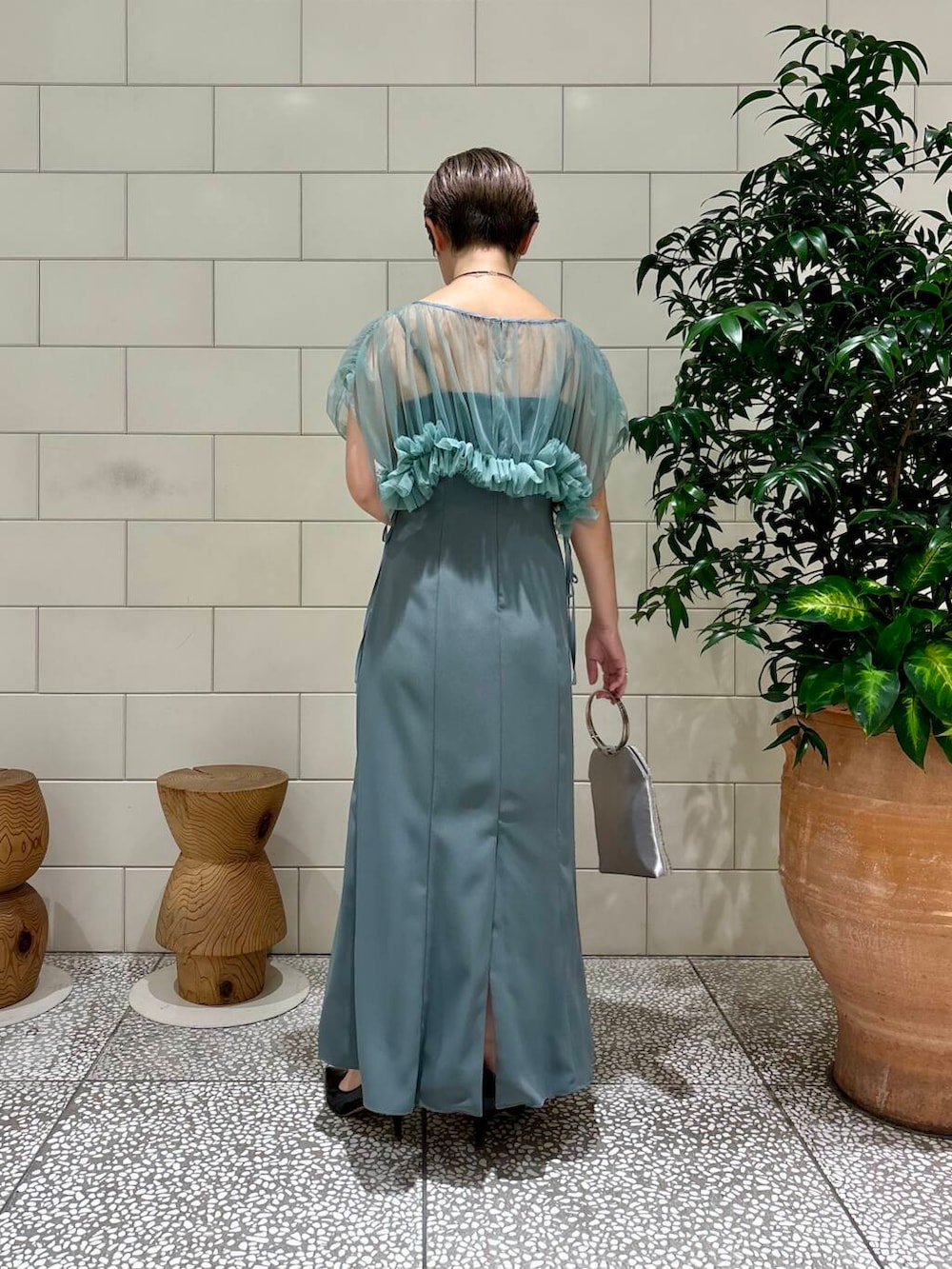 チュールの着丈が短いのでウエスト位置が高く見えるスタイルアップドレスです👗