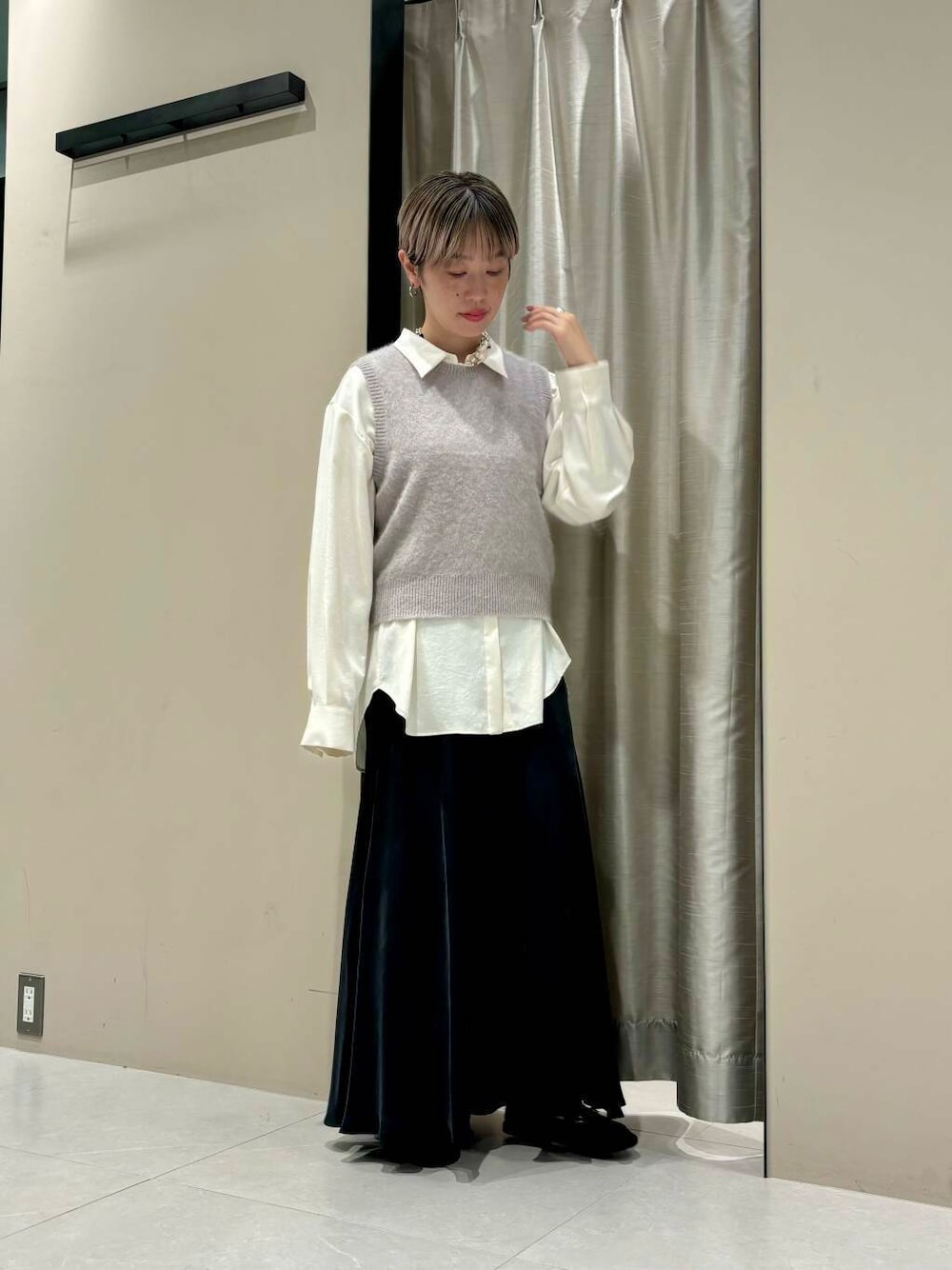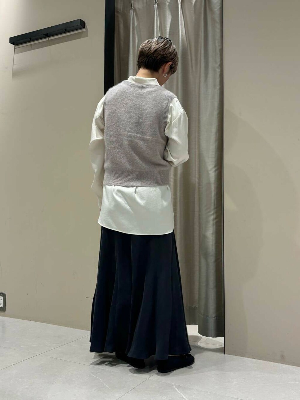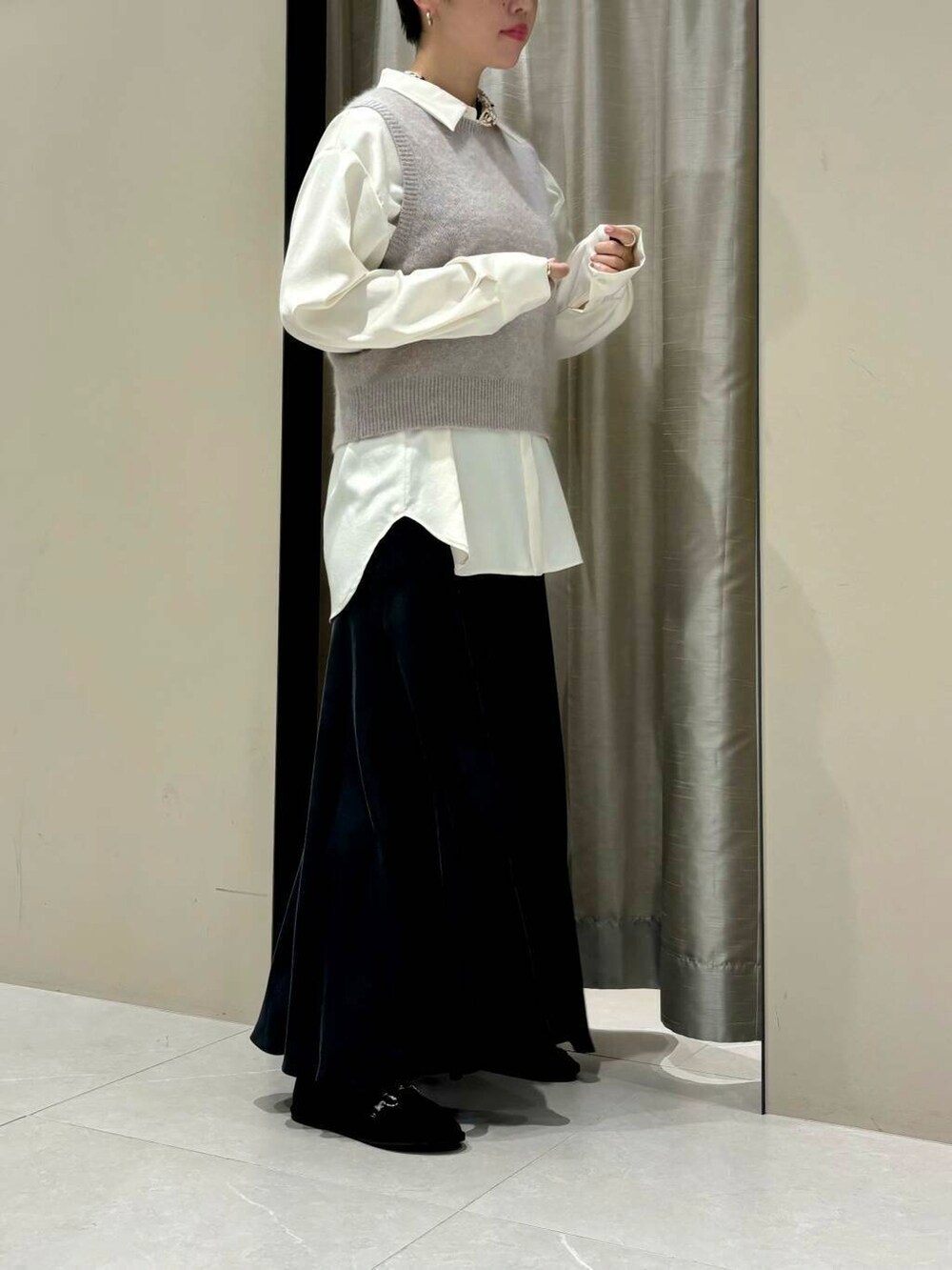 Tシャツに合わせても、ブラウスに合わせても可愛いベスト🩶コンパクトなサイズ感でボトム選びもしやすいです。