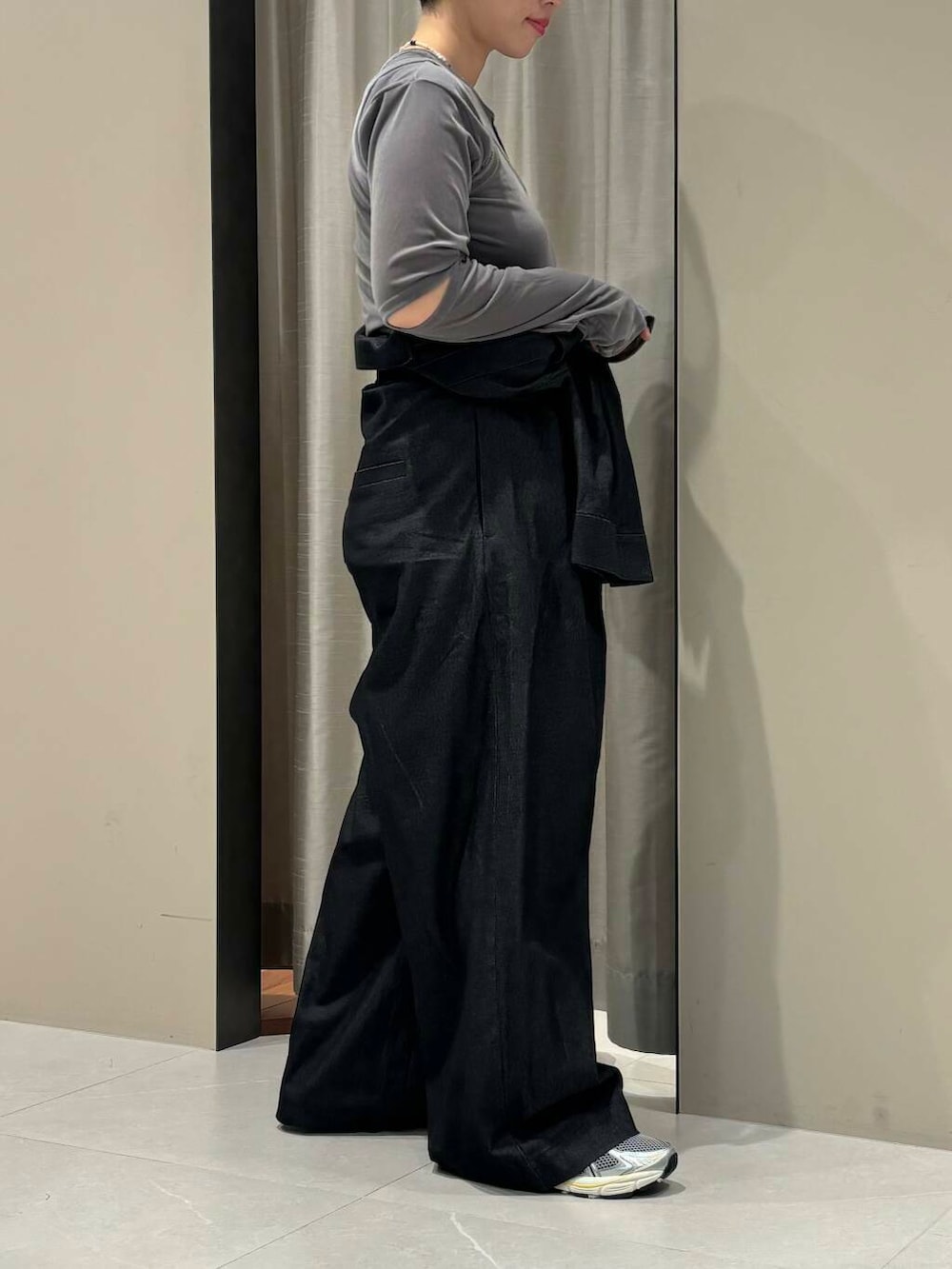 寒くなったら中にニットを着込む余裕があるサイズ感です。