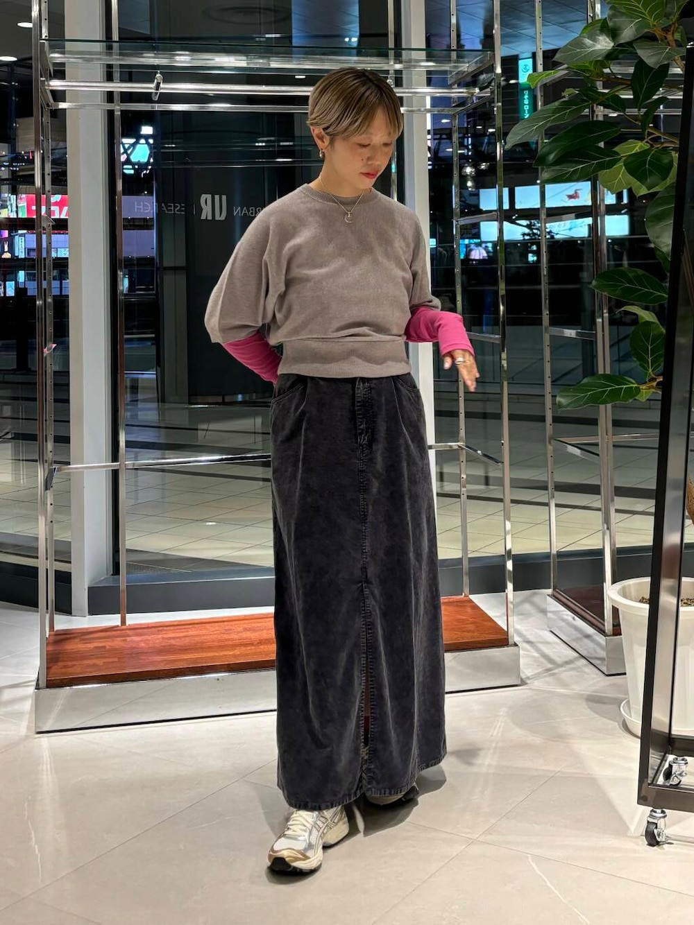 素材はカジュアルですが、スリットも女性らしく着られるポイントです。