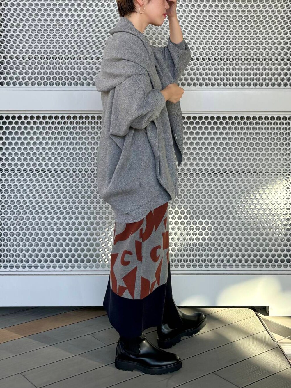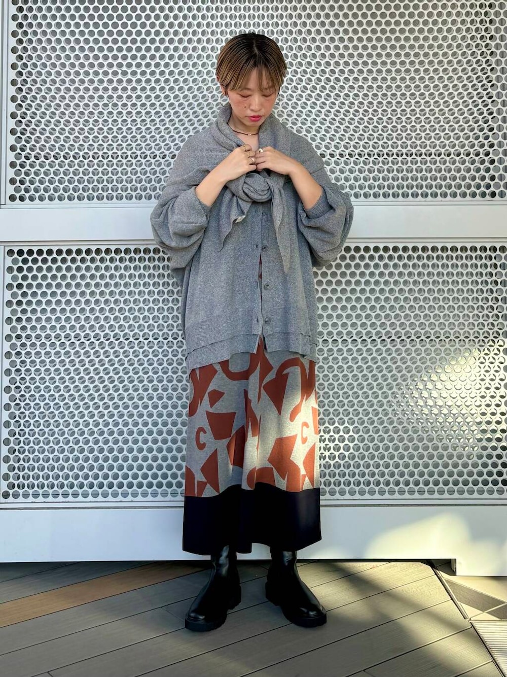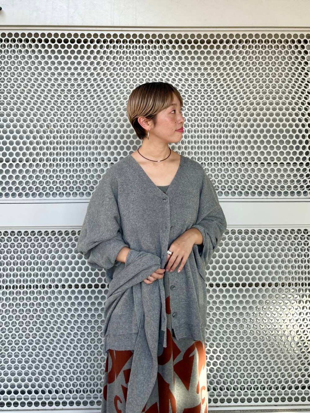 オーバーサイズながら、フロントが少し短めでバランスのとりやすいカーディガンです🩶