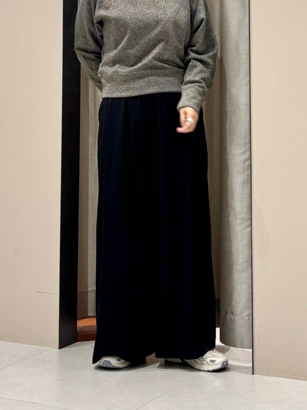 ウエストの切り替えでしっかりと止まるので、ボリュームのあるボトムスもすっきりと合わせられます。