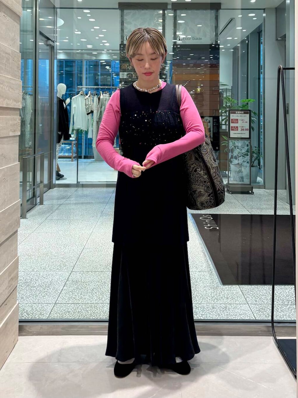 キャミにはスパンコールが編み込まれていてキラキラするのが可愛いです。