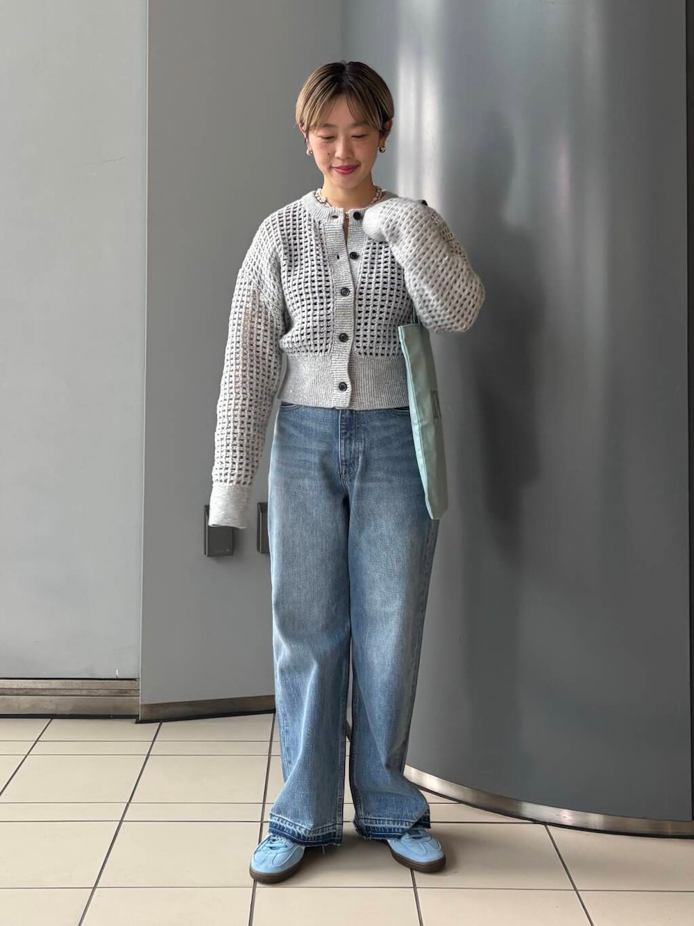 着丈はやや短めなので、ボトムのバランスを取りやすいです。
