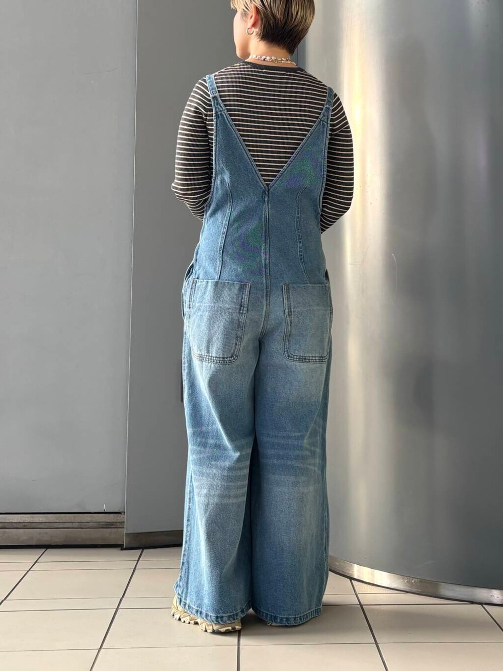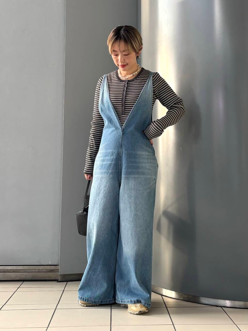 Vネックが大人な印象で、カジュアルでもジャケットなどのキレイめアイテムとの相性のいいサロペットです。
