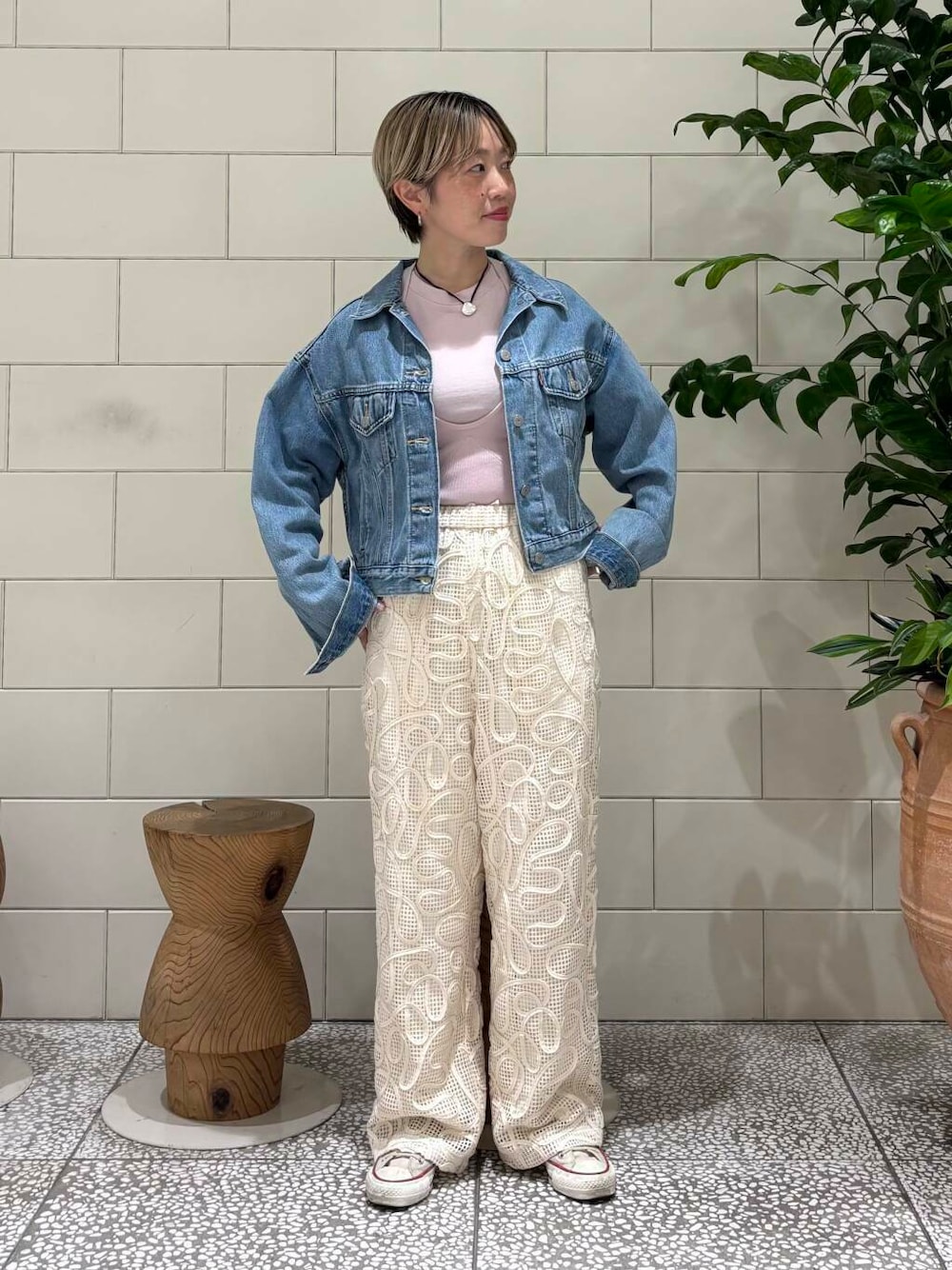 立体的なレースが華やかで、今季のレイヤードスタイルにも使いやすいストレートのシルエットが便利です🌷