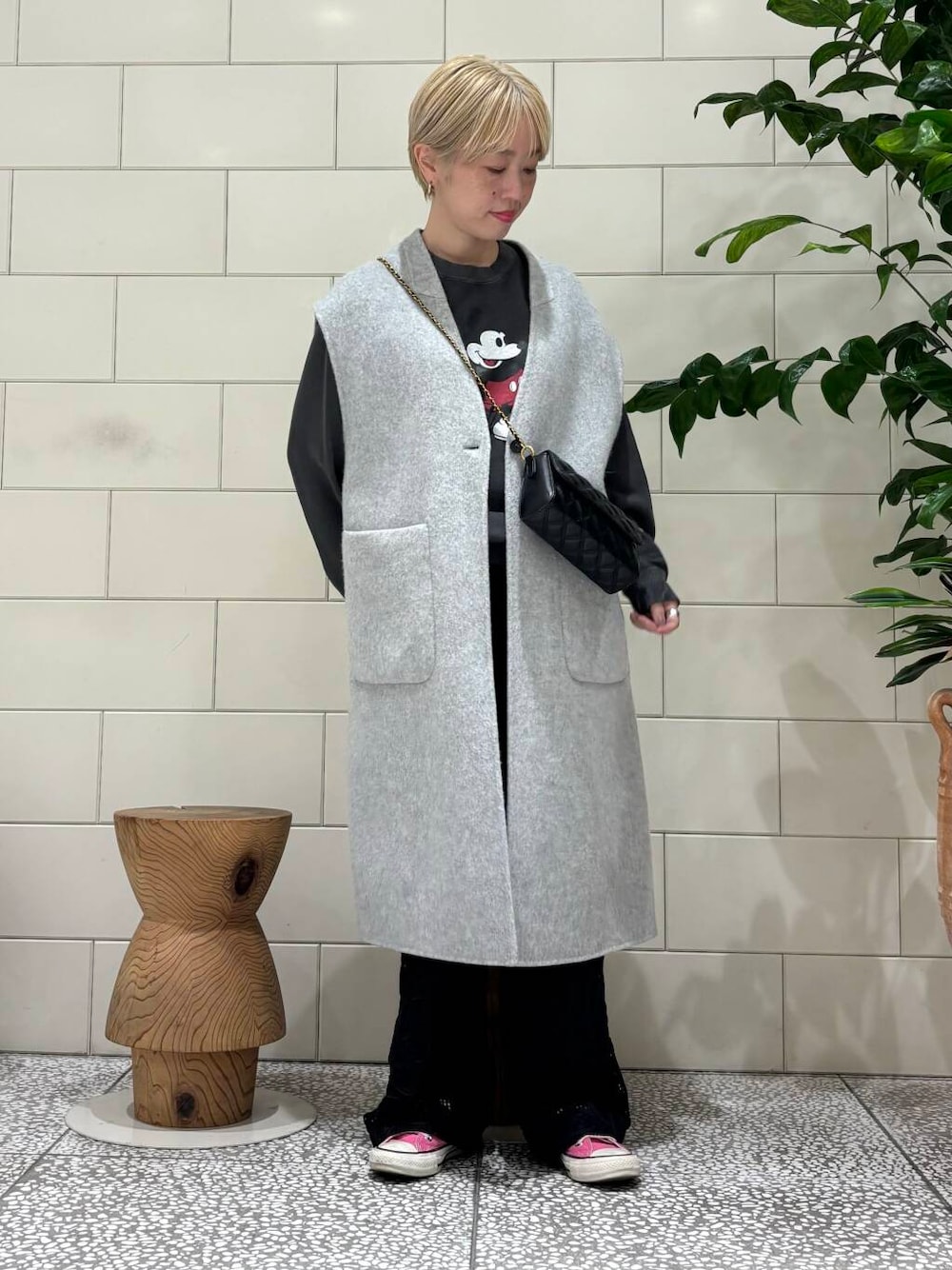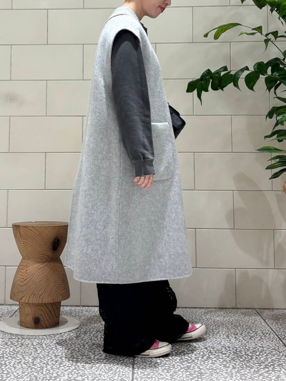 袖ぐりもゆったりしているので、今回はスウェットを合わせて着てみました!