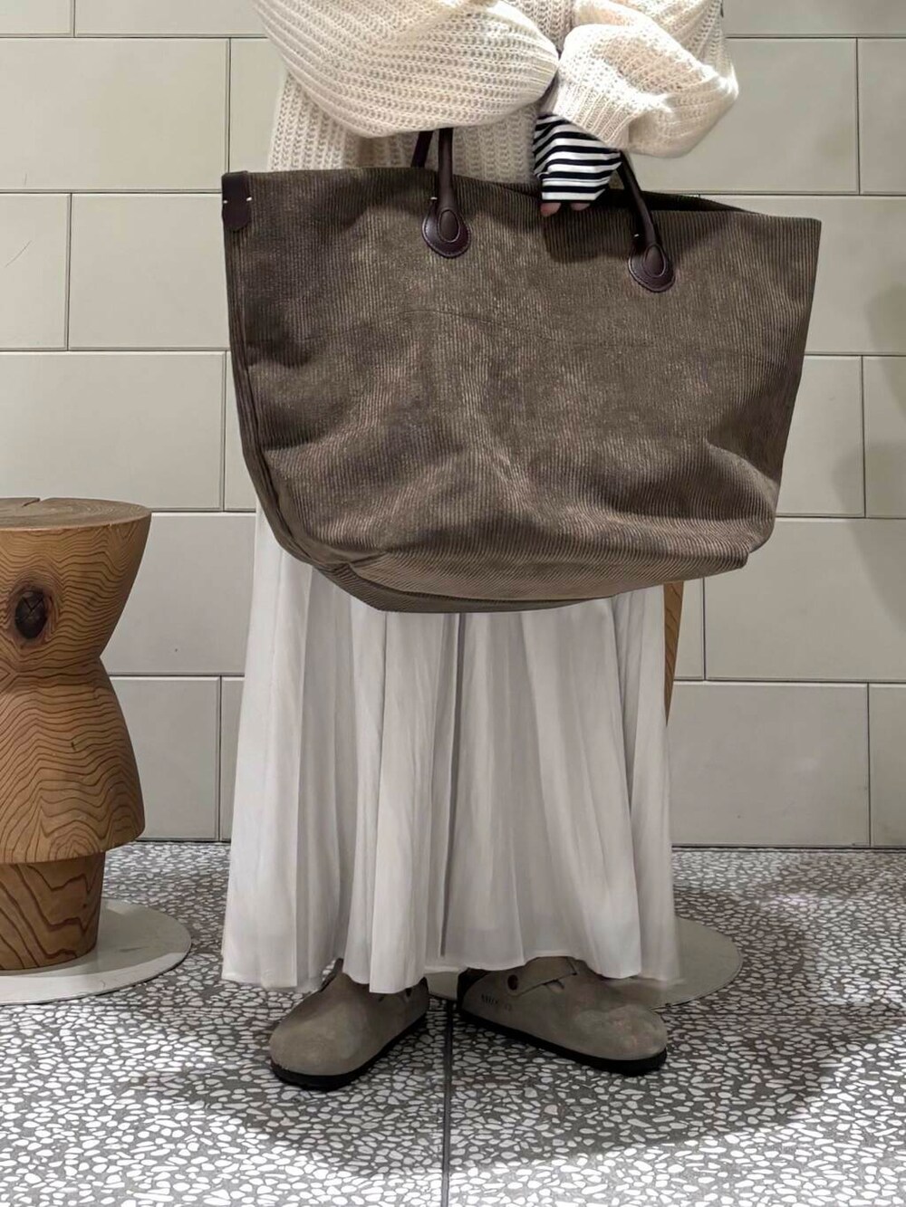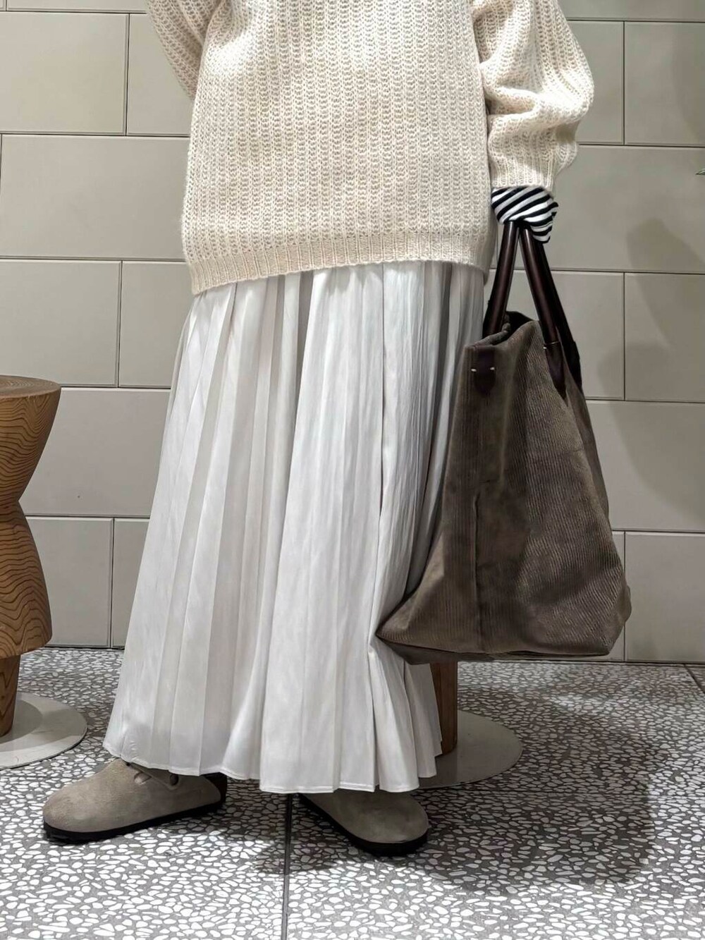 オールホワイトなワントーンコーデをしたかったのですが、こちらのスカートだと素材にメリハリが出せてバランスよく着られました!