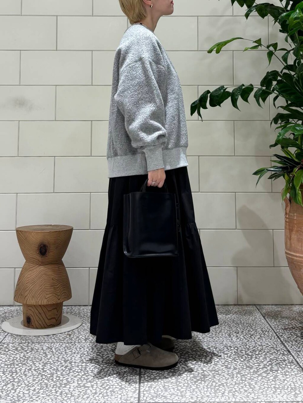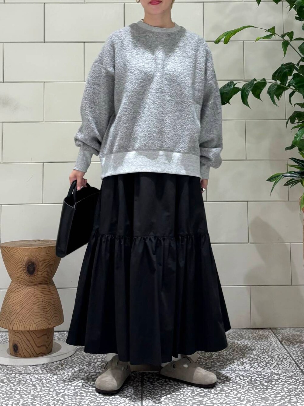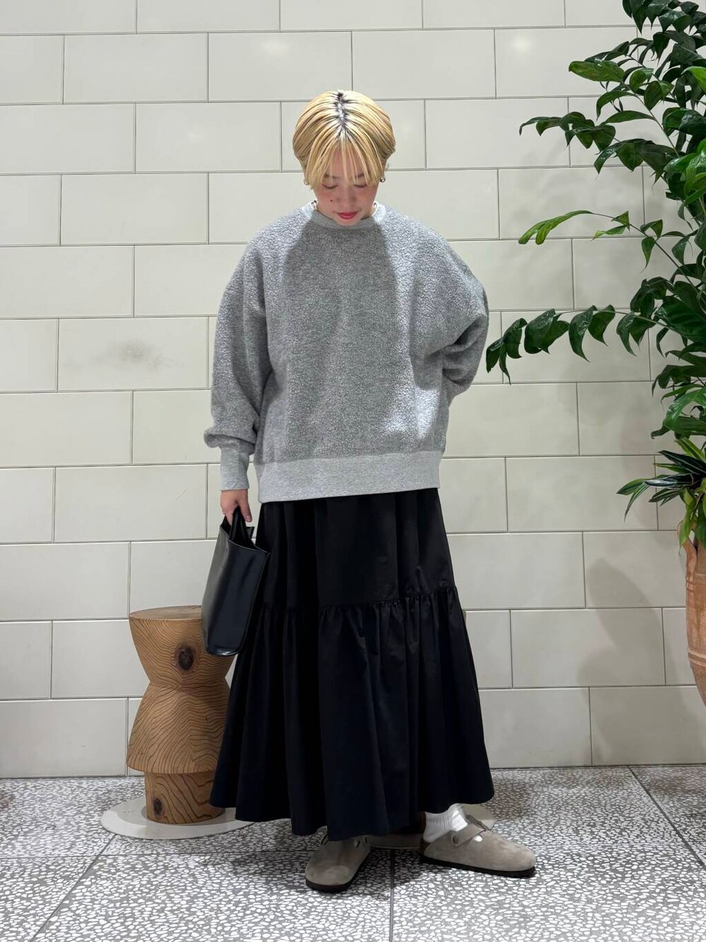 オーバーサイズですが着心地は軽く、中にも重ねやすいです。