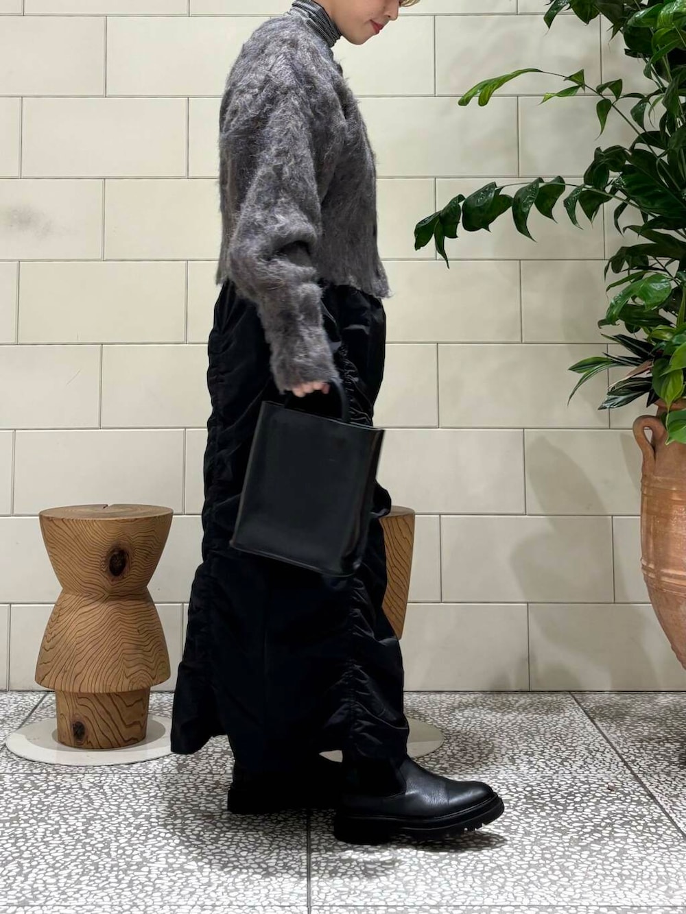 秋冬の重たい素材と相性のいい素材で、コーディネートに軽さを出してくれます。