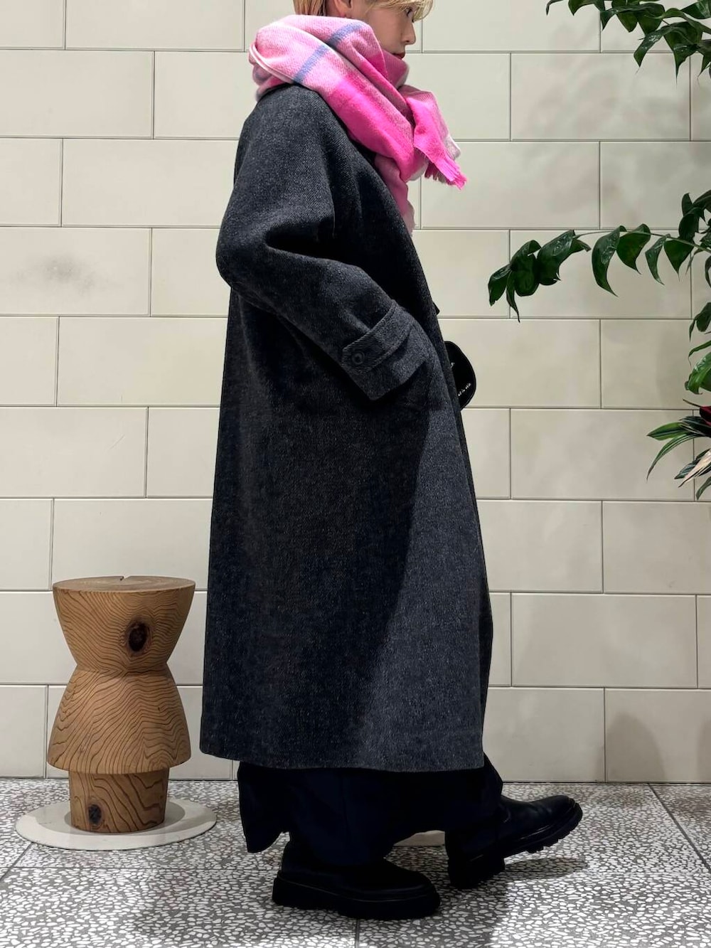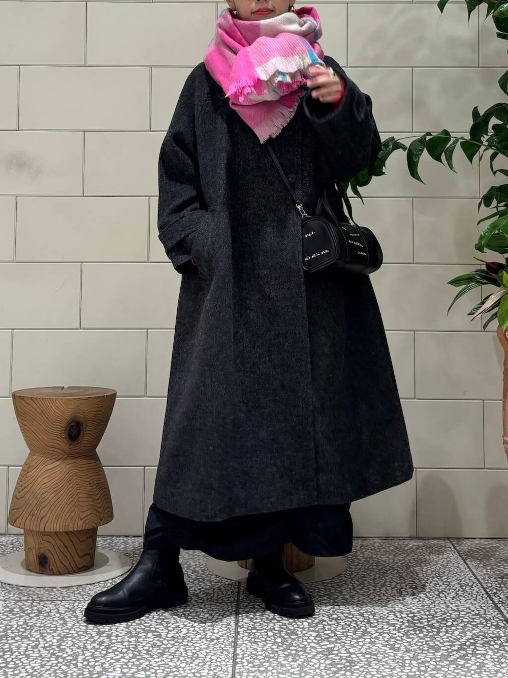 ざっくりしたサイズ感のアウターで、中にも着込める余裕があります。