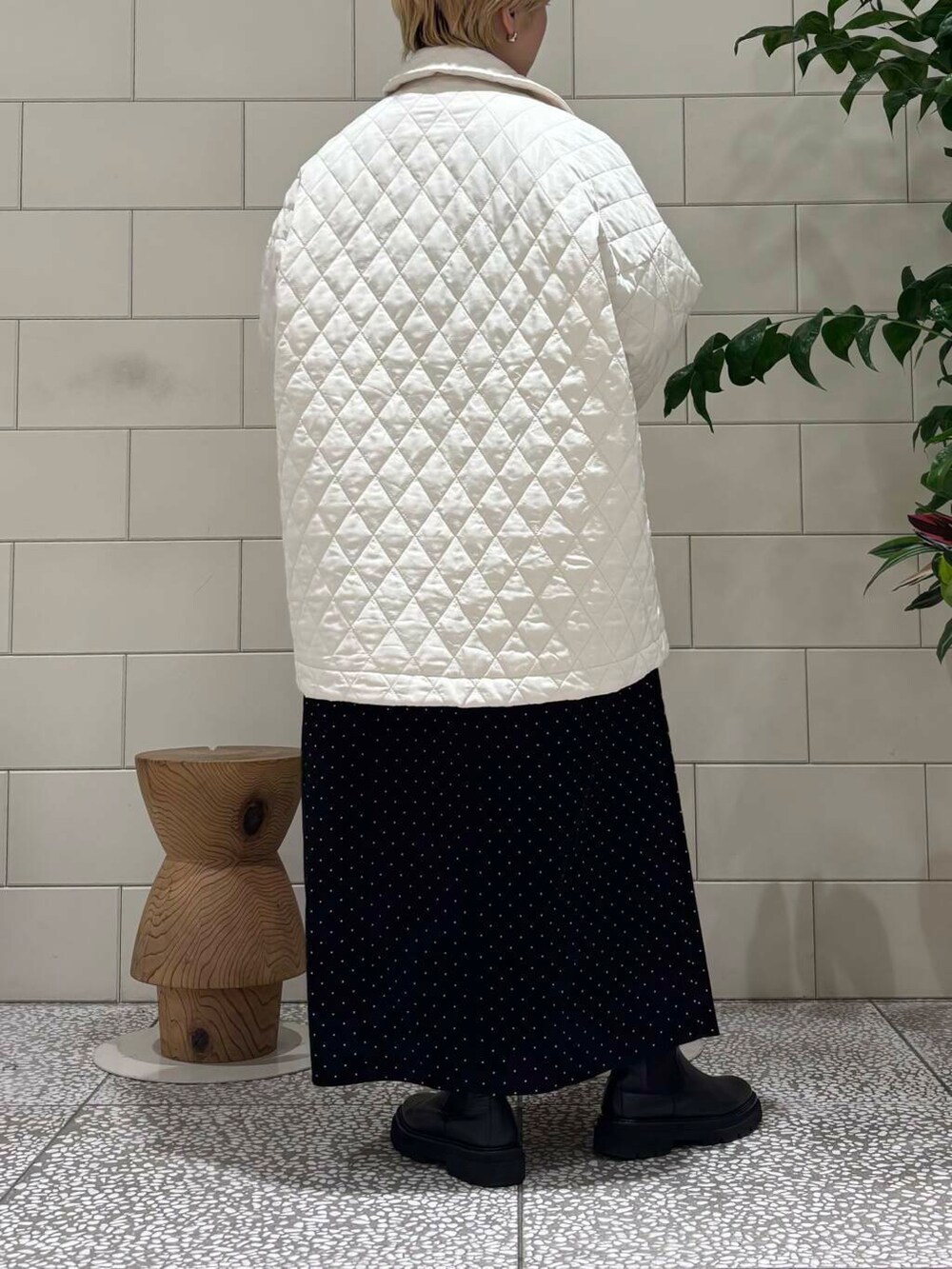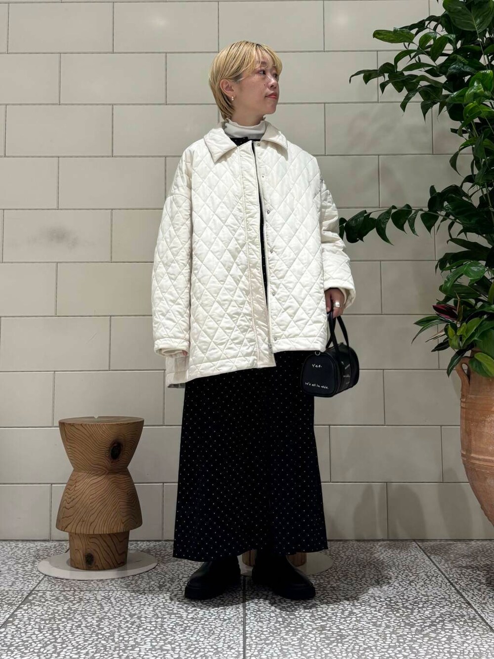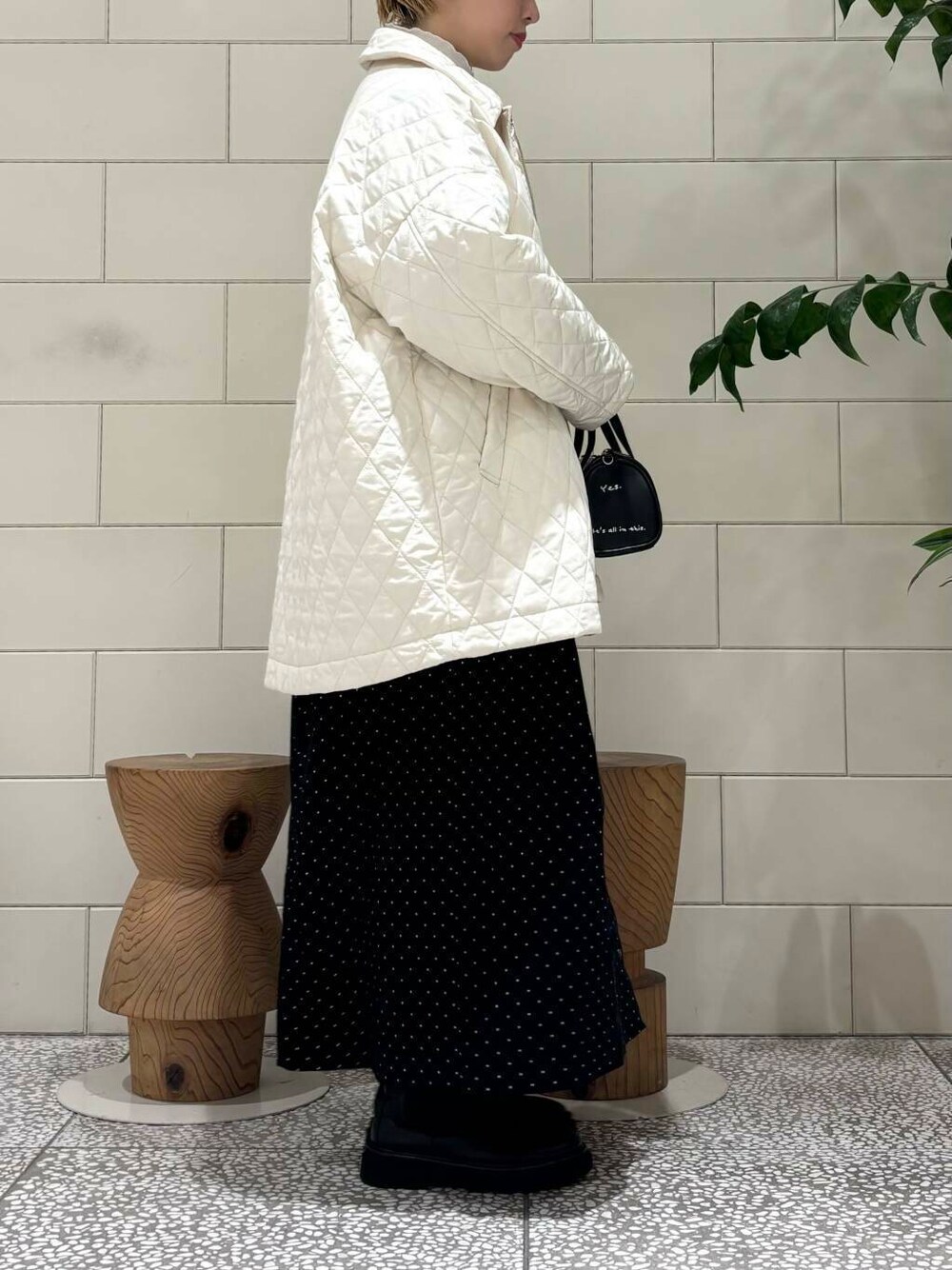 キルティングは甘くなりすぎず、カジュアルなコーディネートにぴったりです。