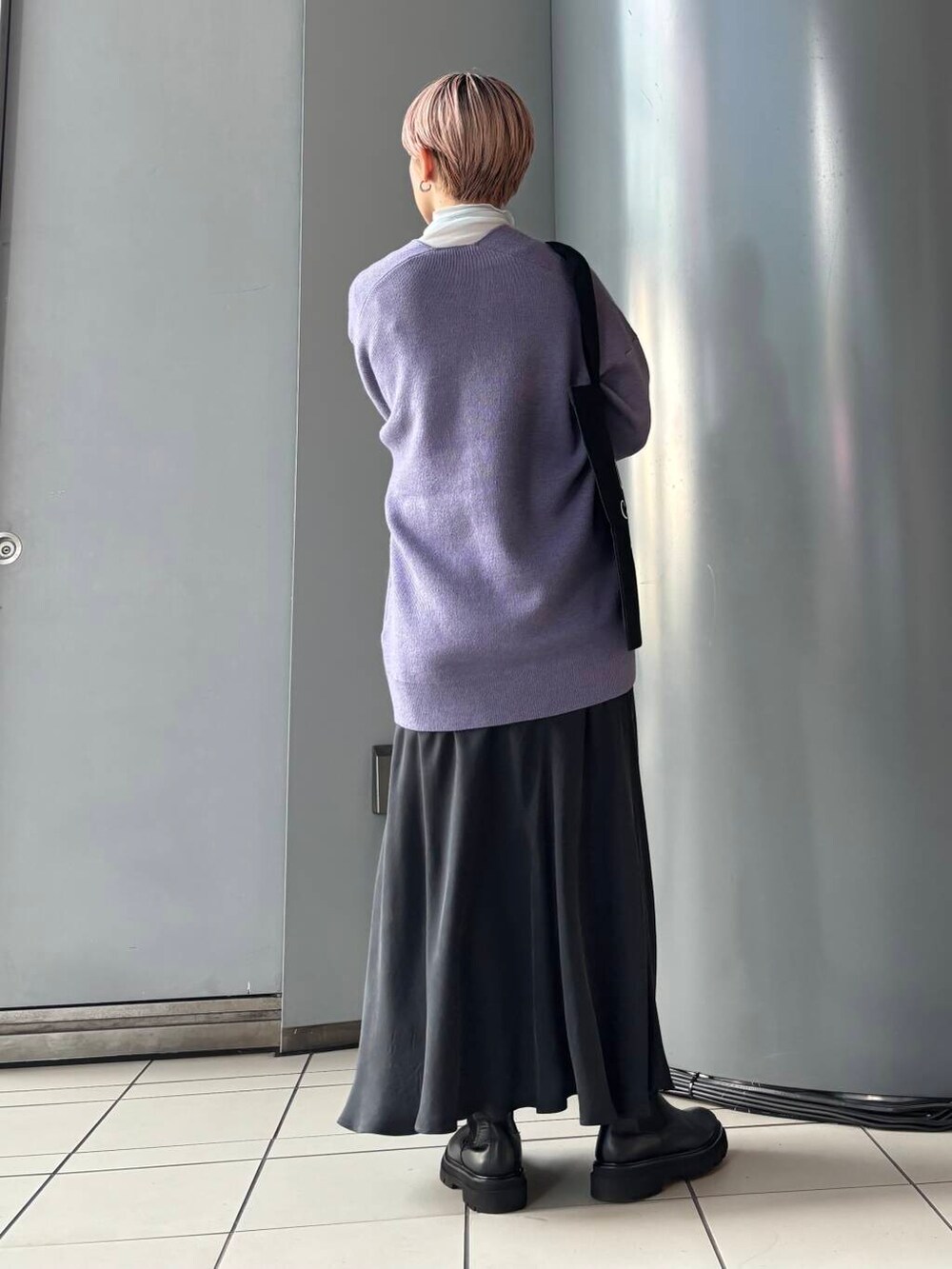 キュプラの落ち感のある素材で、どんなスタイリングにも合わせやすいです。