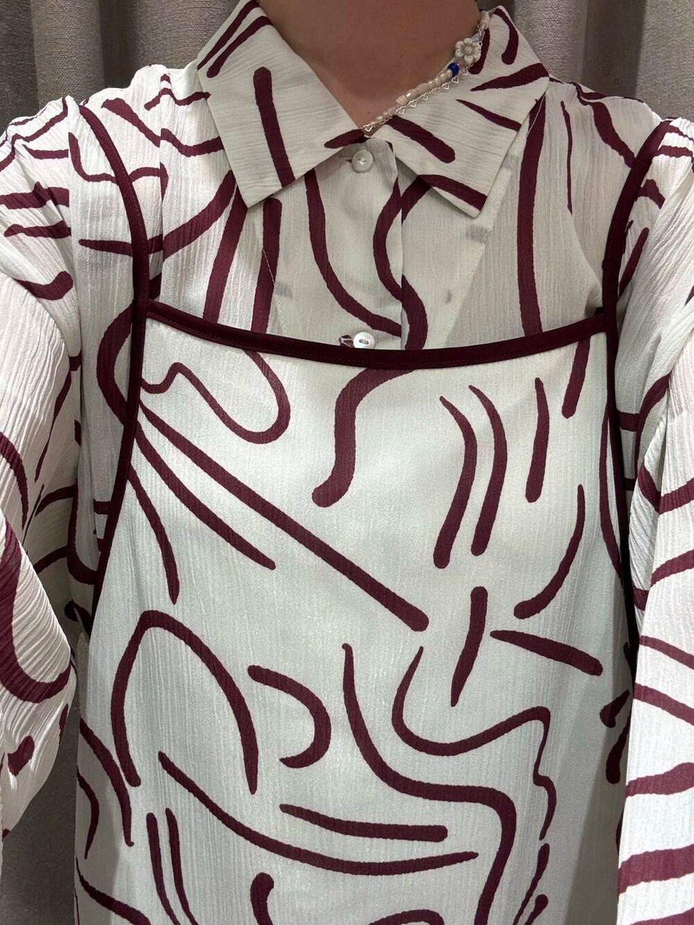 甘くなりがちなキャミワンピースもシャツに重ねて、甘さを抑えてトレンド感を。