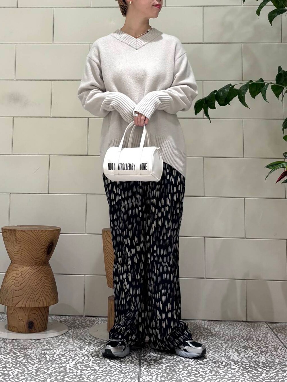 インパクトのある柄が普段のスタイリングと少し違う雰囲気に仕上げてくれます。
