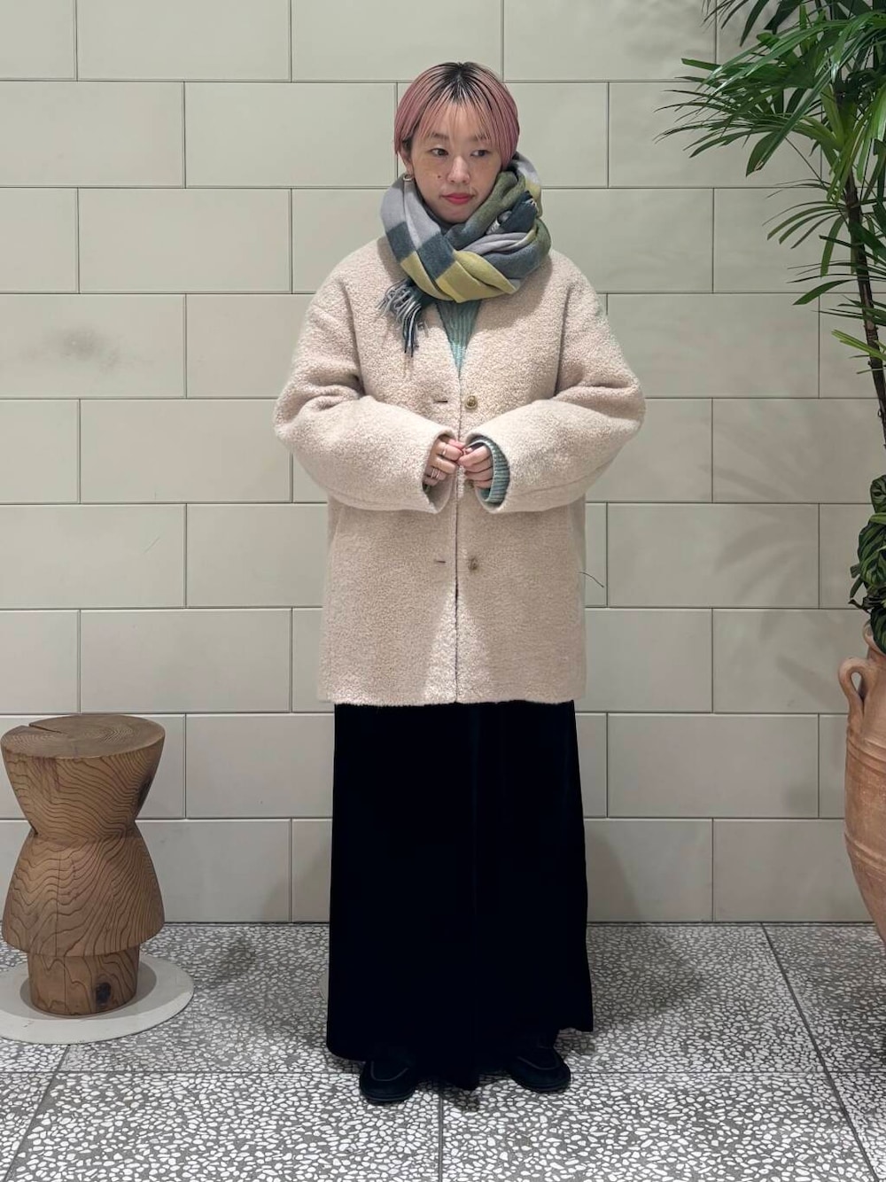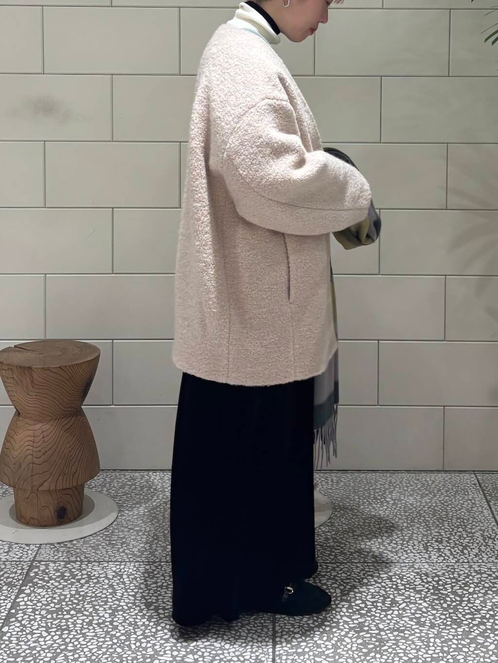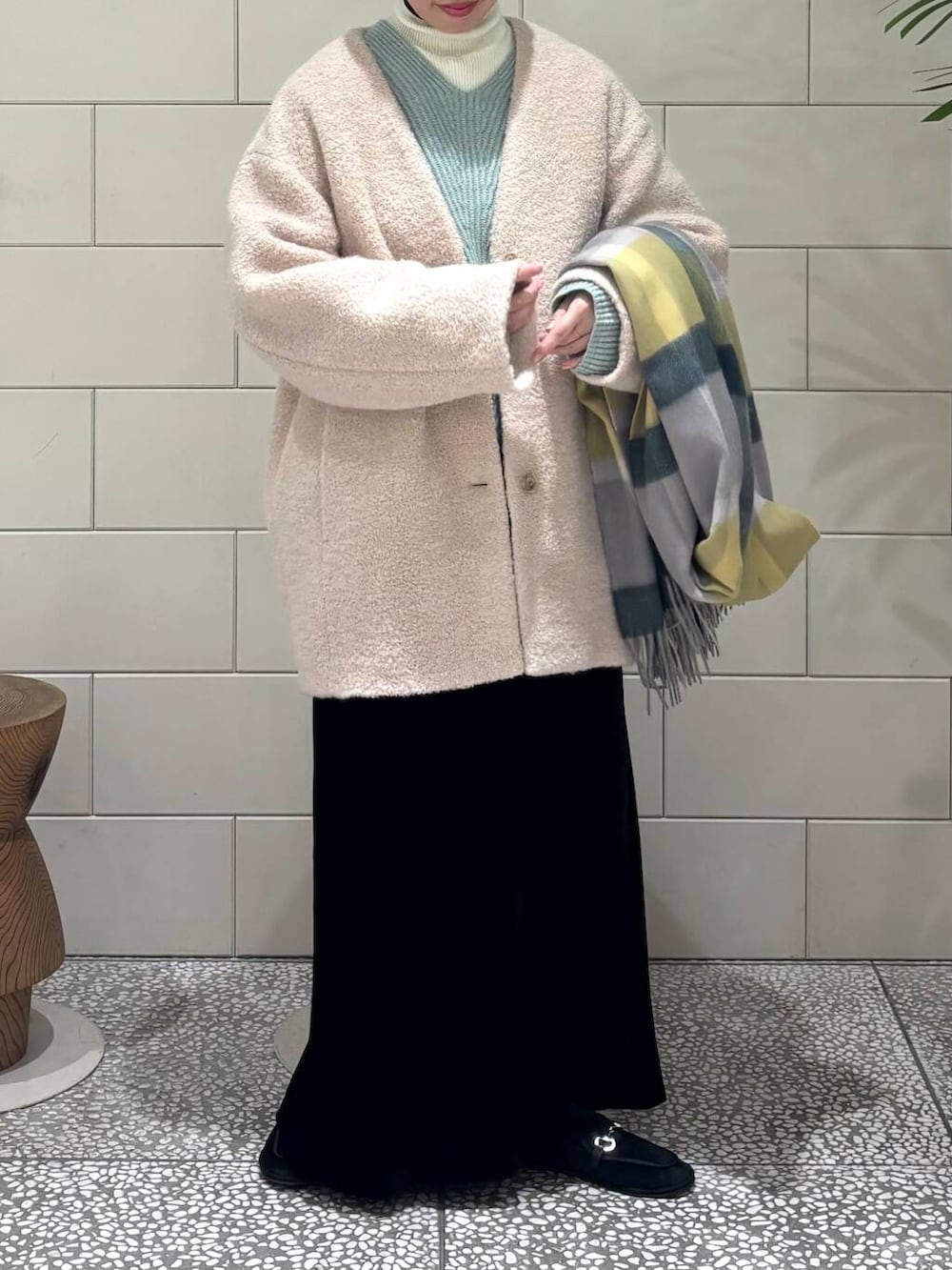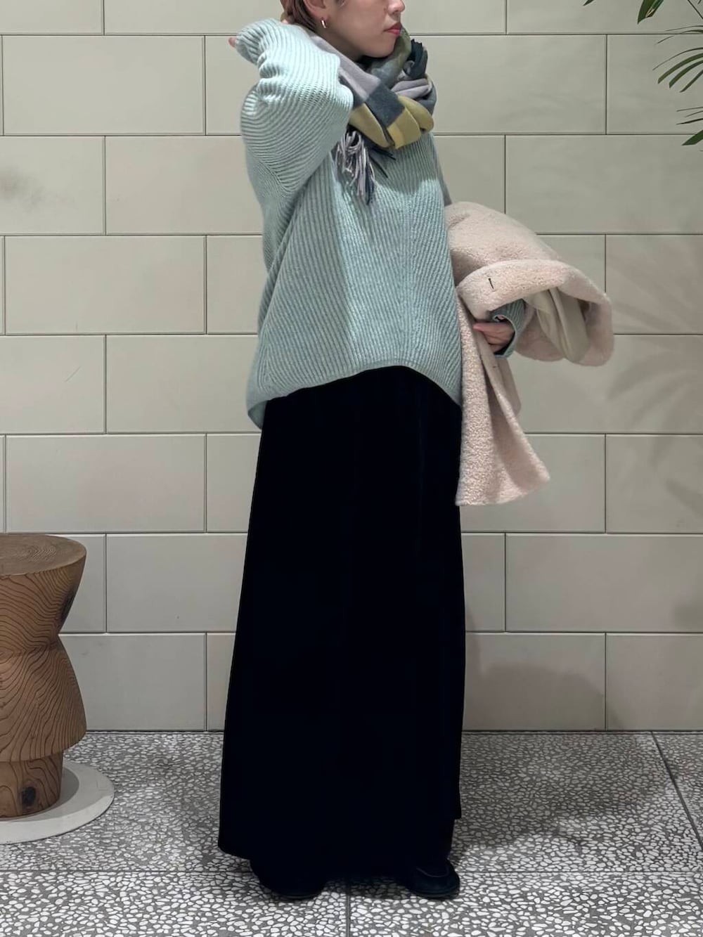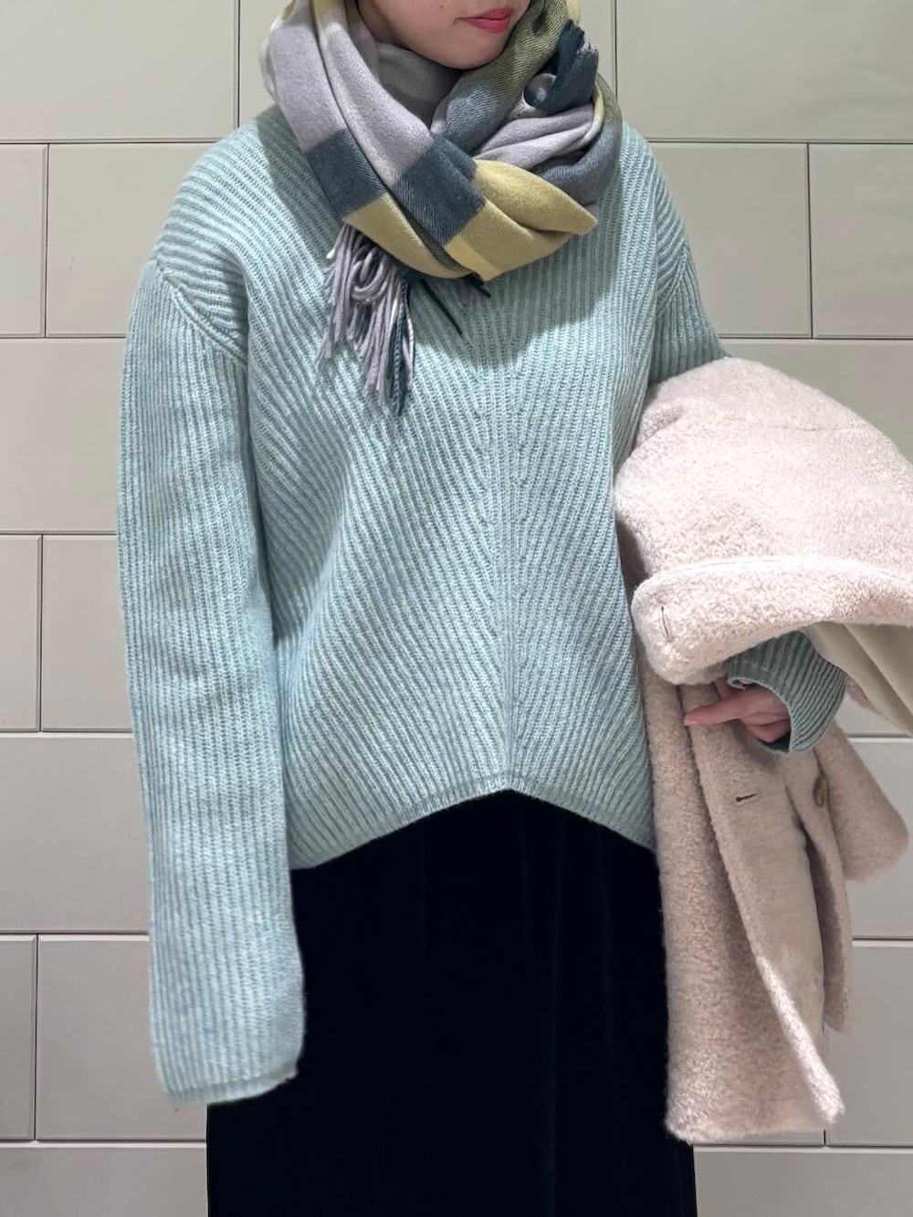 下にも薄手のニットを合わせて真冬のコーディネートにしました!
