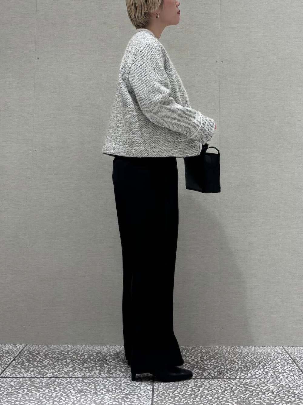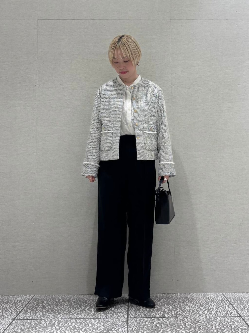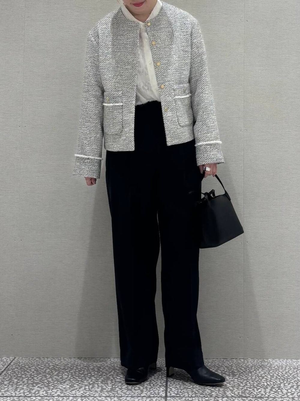 キラキラしてない甘くないツイードなので、コンサバっぽくならずにデニムなどのカジュアルなアイテムとも合わせていただけます。