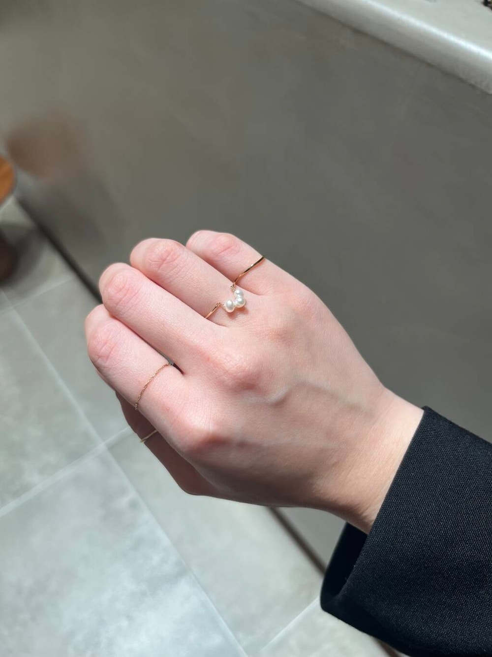 ピンキーにつけているヒネリカーブリングは万能すぎて何と合わせても馴染みます