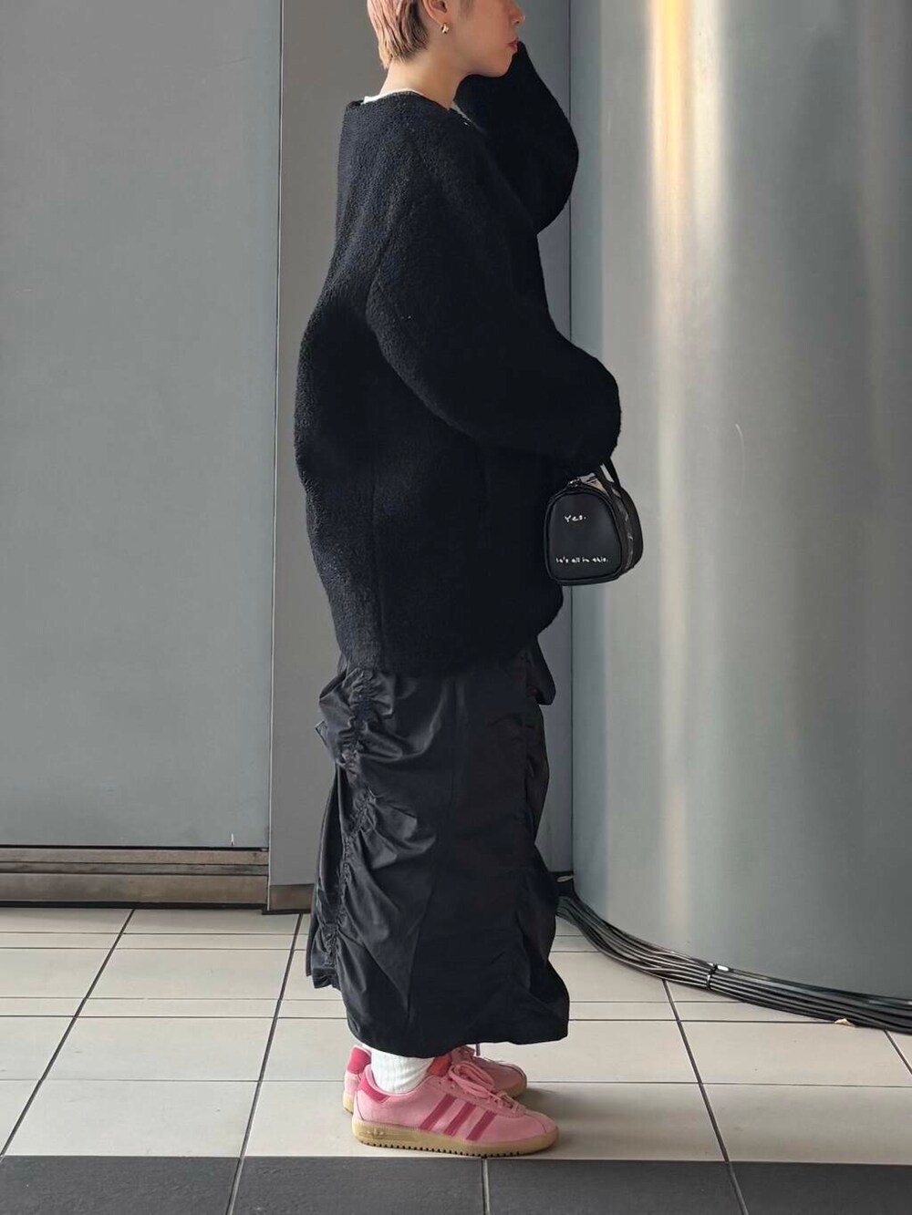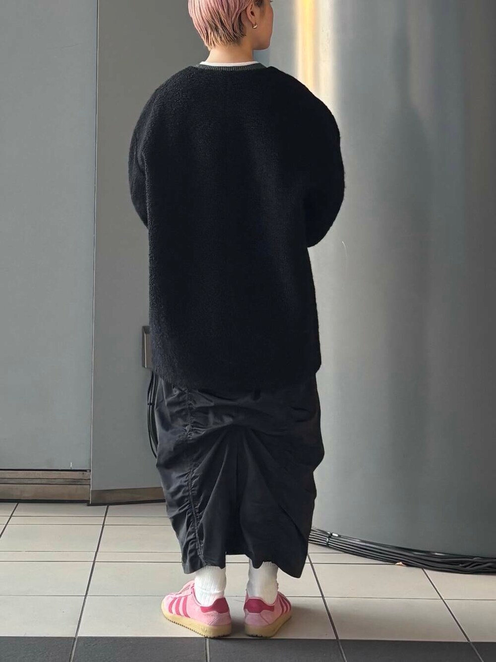 ややオーバーサイズで、ボディラインを拾わないサイズ感です。