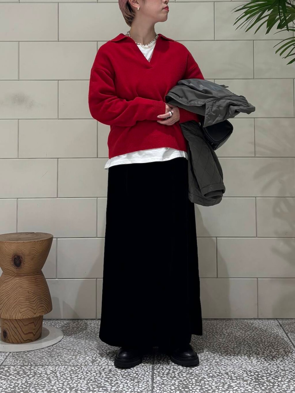 スタイリングに変化をつけるのに便利なベロア素材。
