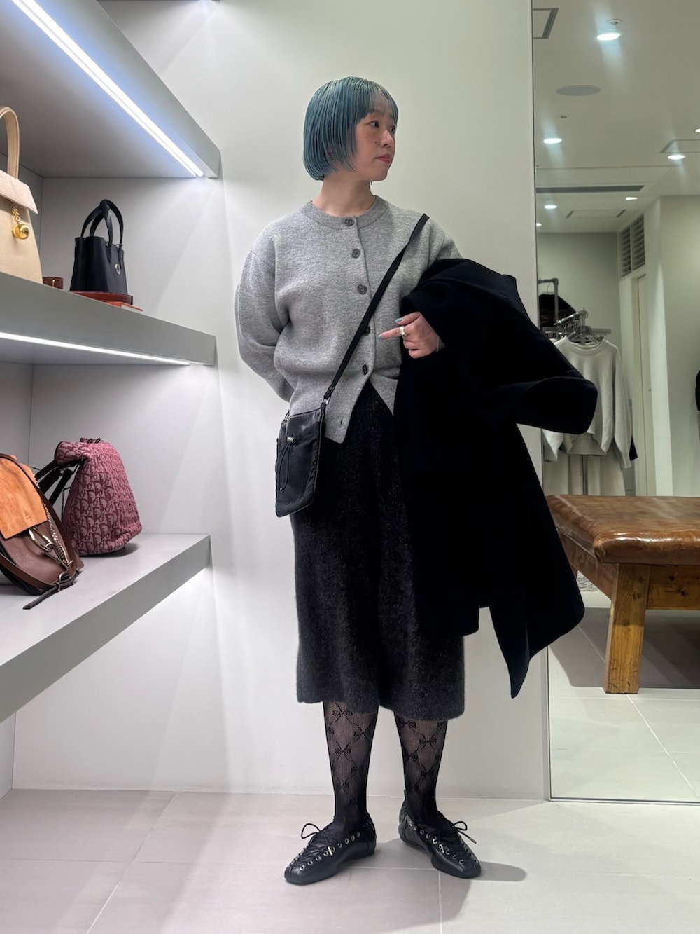 かっこよくなりすぎず、スカートやワンピースのスタイリングでも合わせられます。