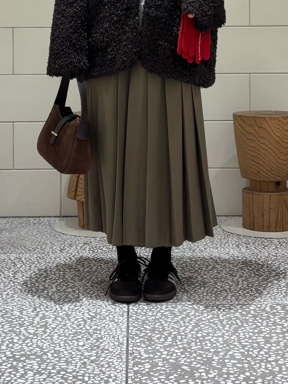今季取り入れたいプリーツラップスカートです。一枚でもレイヤードアイテムとしても活躍してくれそうです。