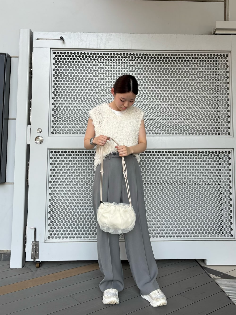肩部分が太めなので、良い感じにカバーしてくれます。首元、脇部分の開きが広いので、タンクトップなど中に着ると良いです。