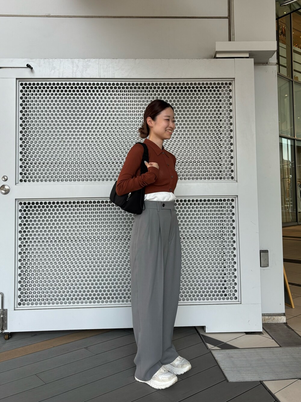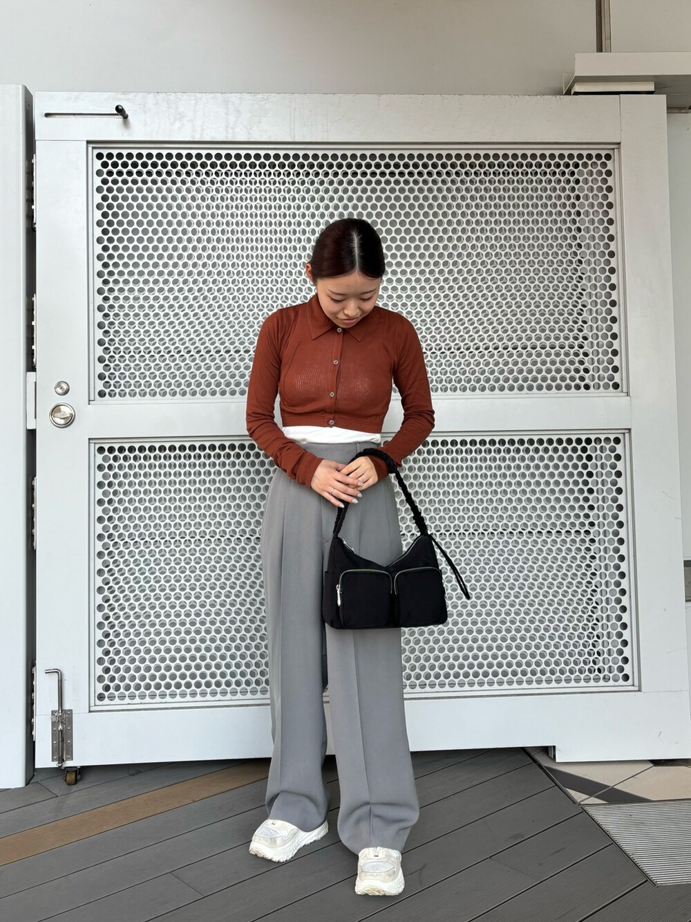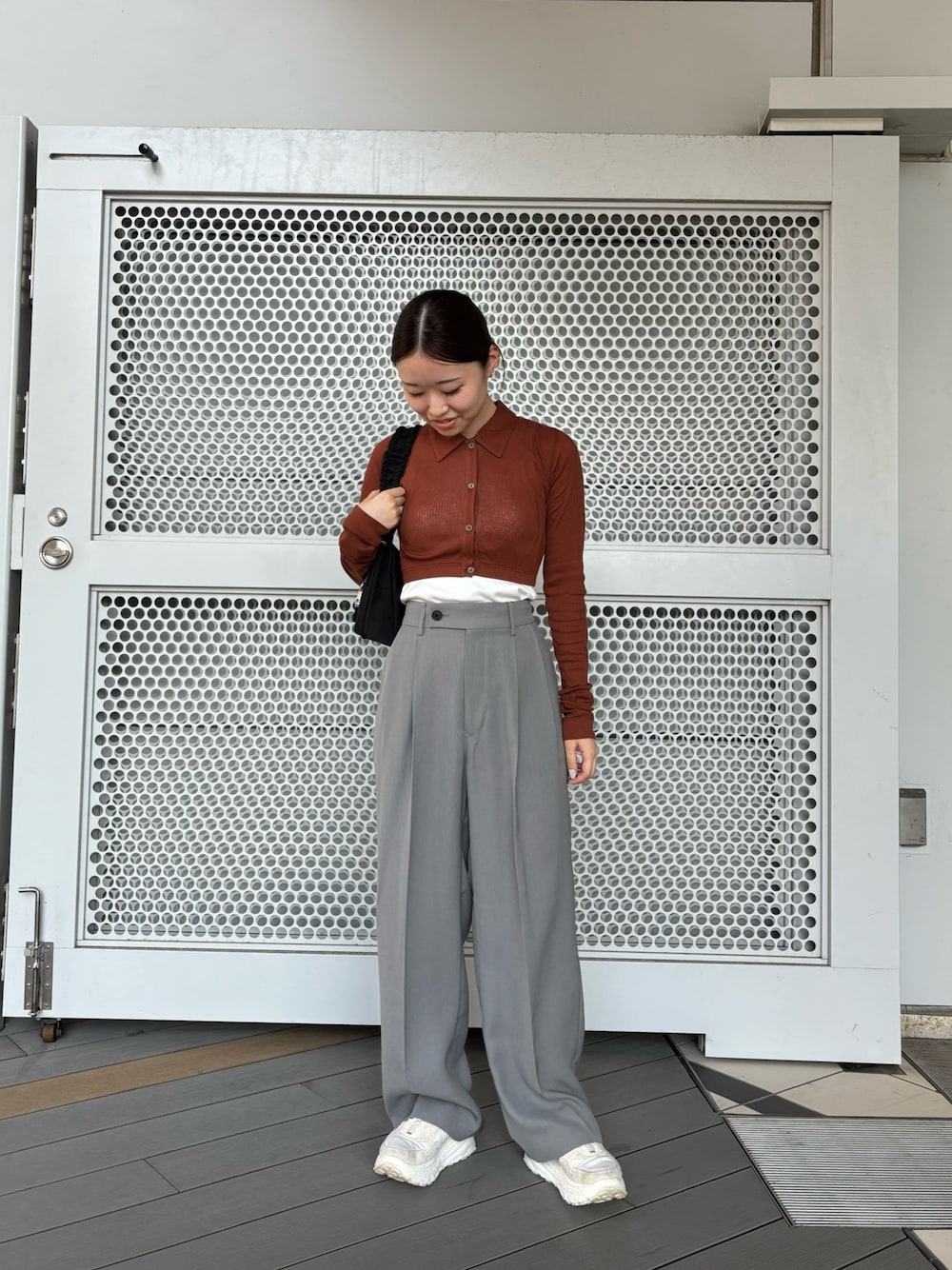 クロップド丈でレイヤードスタイリングが楽しめます。サイズ感がタイトなので締まりのあるシルエットになります。