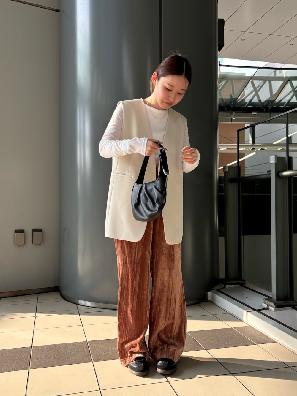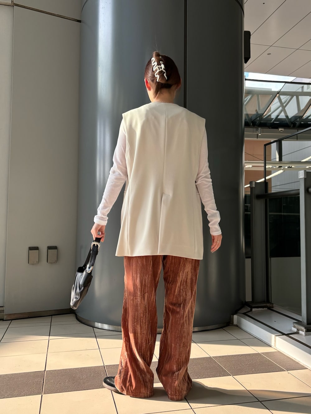 155センチで丈感長めです。ソールの高い靴を合わせていただくといい感じになります◎紐でウエスト調節できます。履き心地とても楽です。