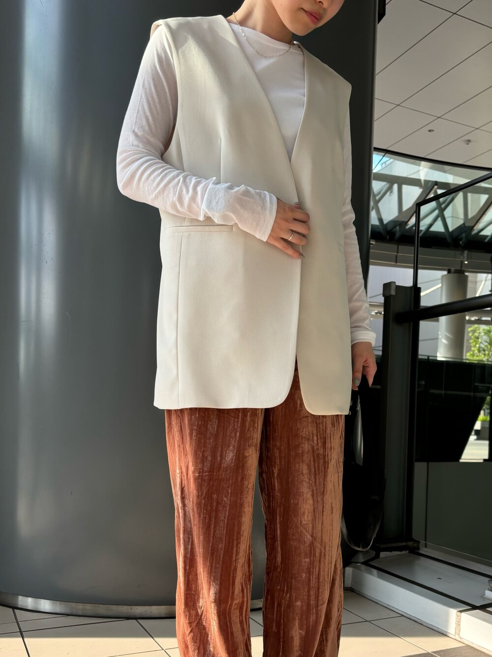 シンプルで使いやすく、これから秋にかけて活躍する一枚です。上にビスチェなどを合わせても◎肌触りが柔らかいです。