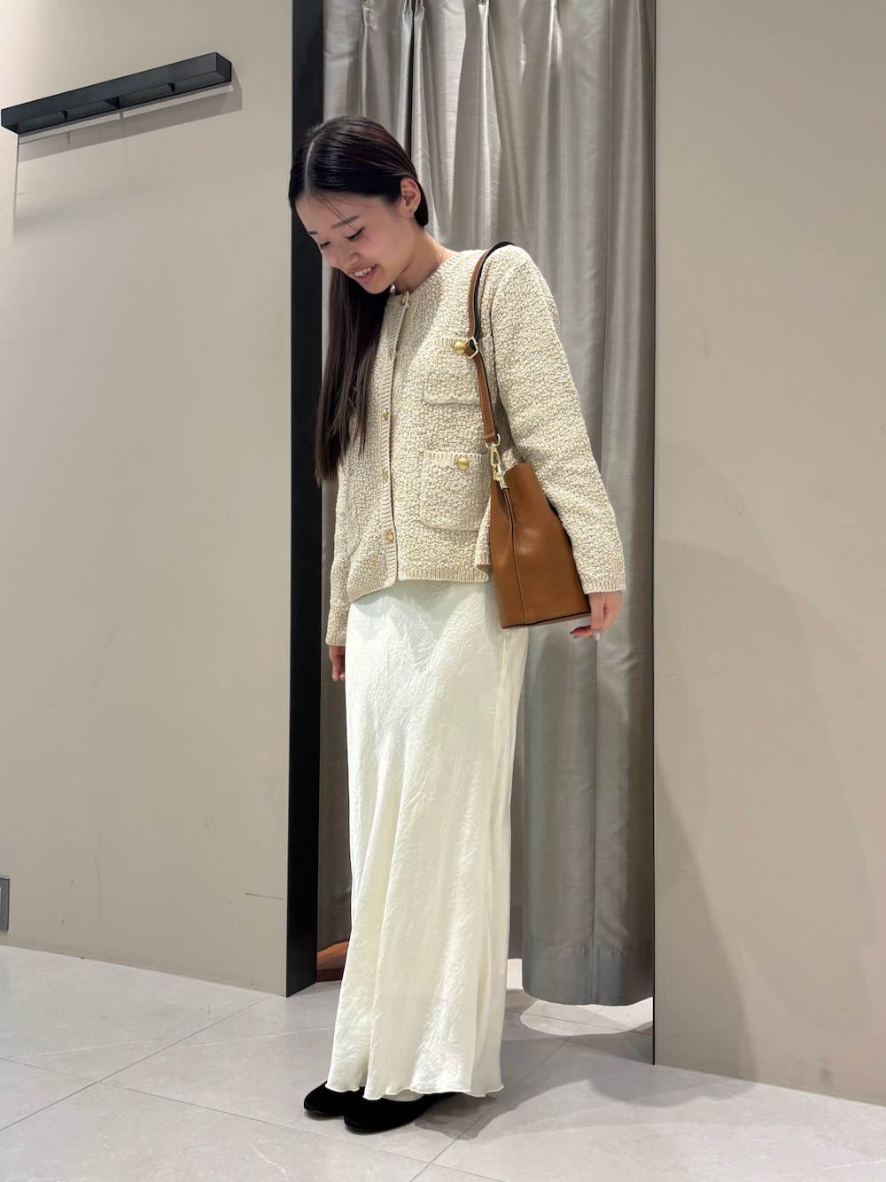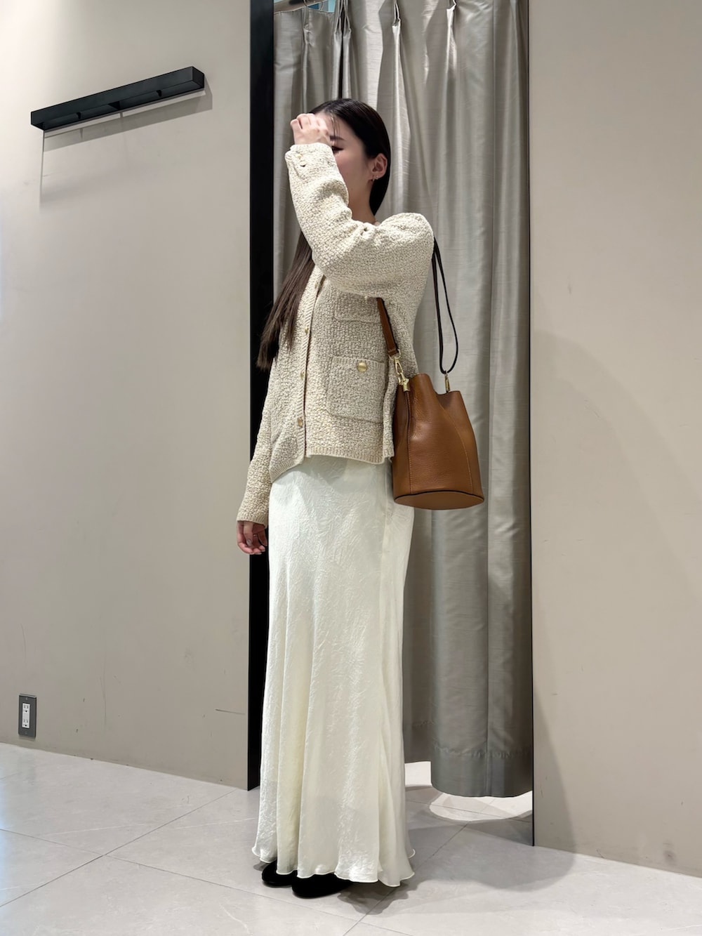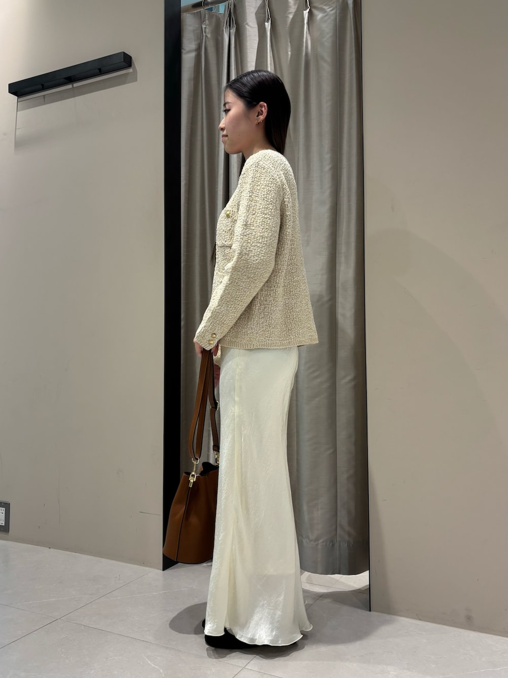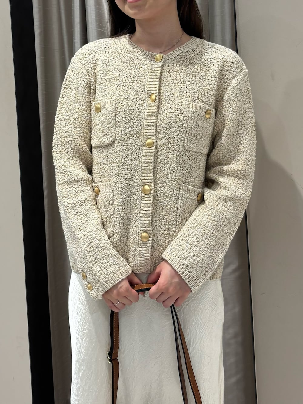 写真のように一枚でトップスとしても、ブラウスなどと合わせてカーディガンとしてもご着用いただけます。ツイードニュアンスが季節感のあるスタイリングに仕上げてくれます。