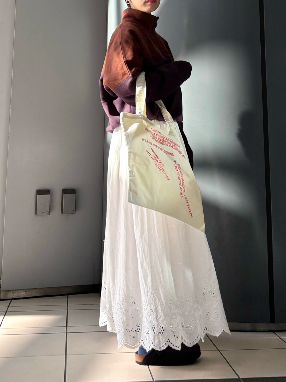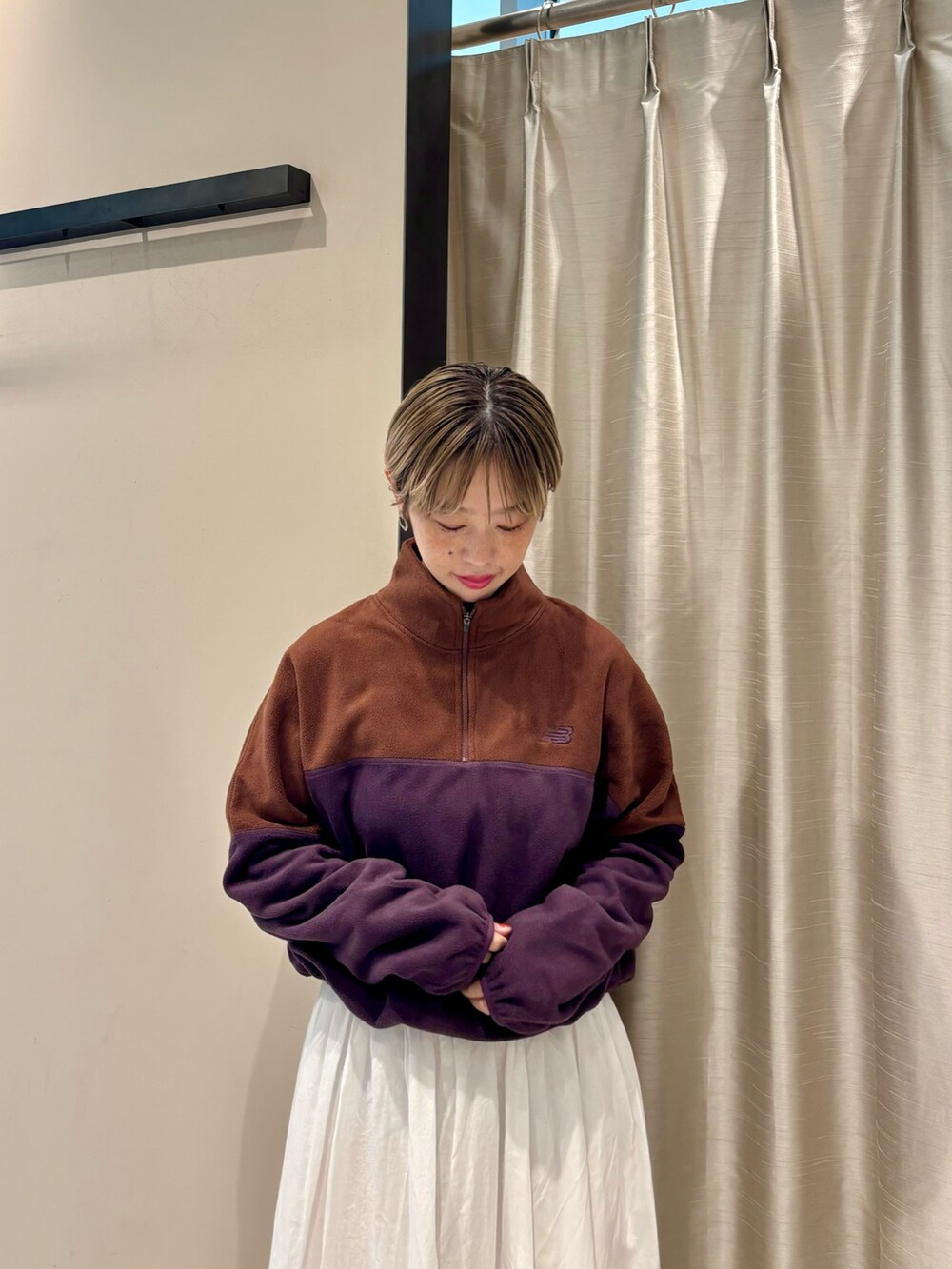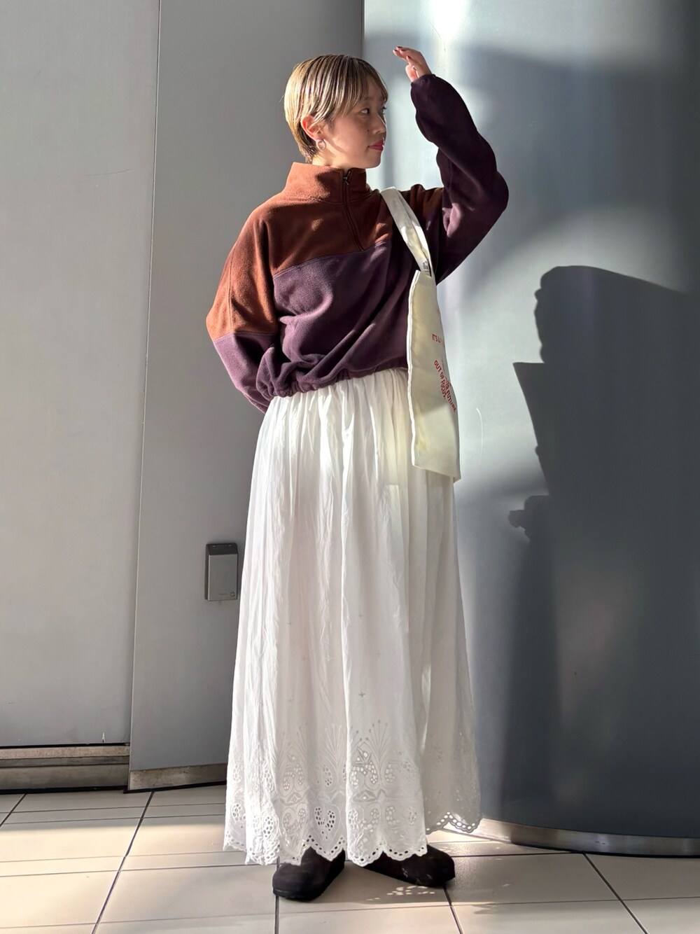 フリース×レースがちょうどいい甘さなコーディネート。