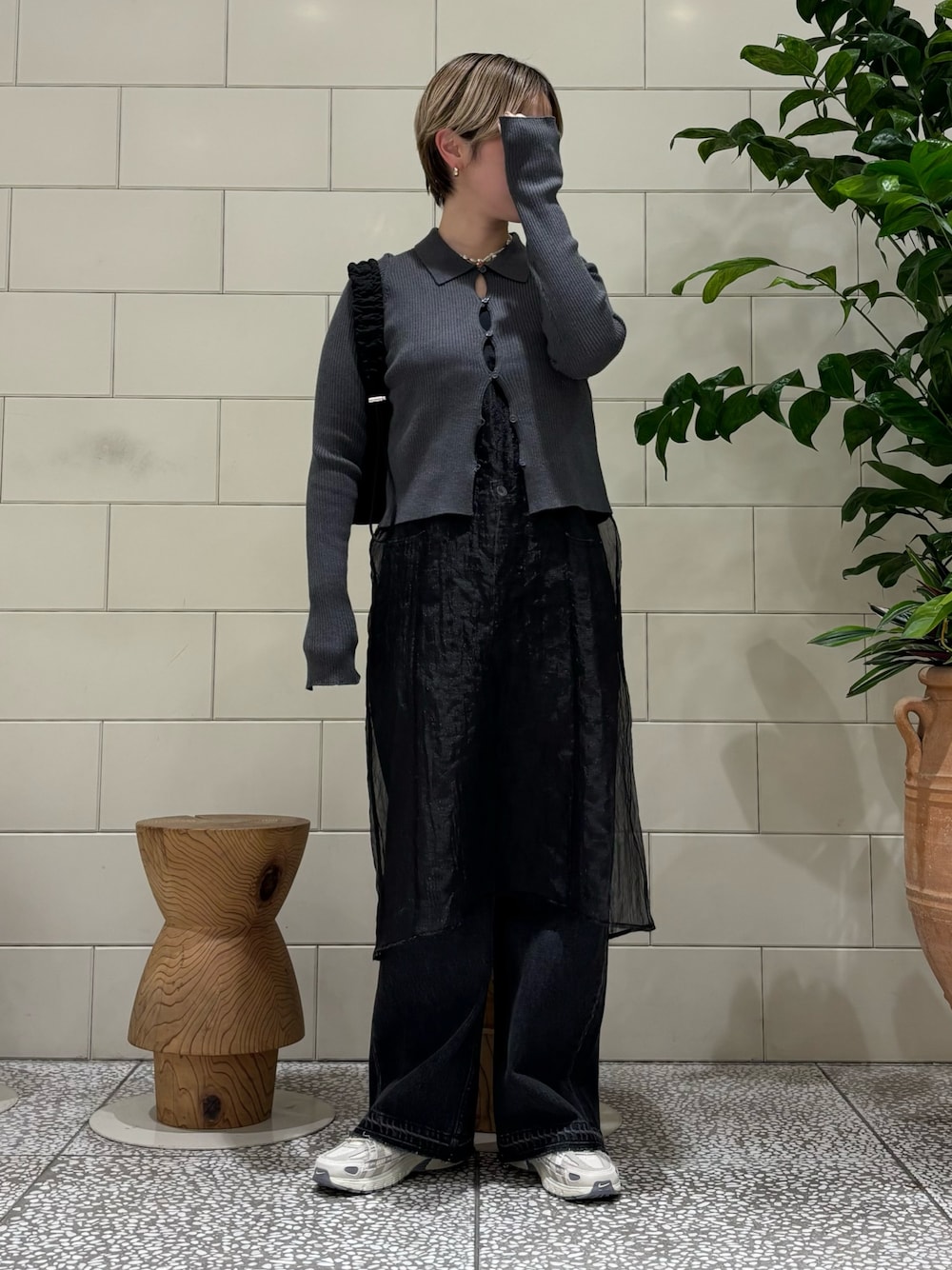 カーディガン×ワンピース×デニムのレイヤードコーデ🐘