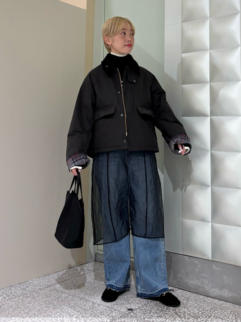 バランスの取りやすいショート丈アウターです。