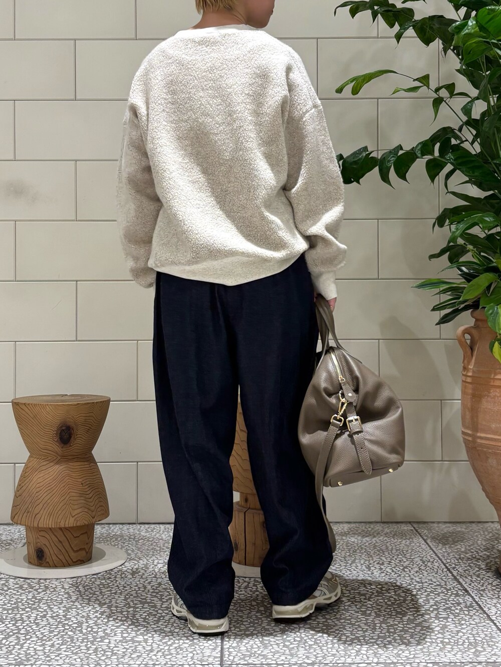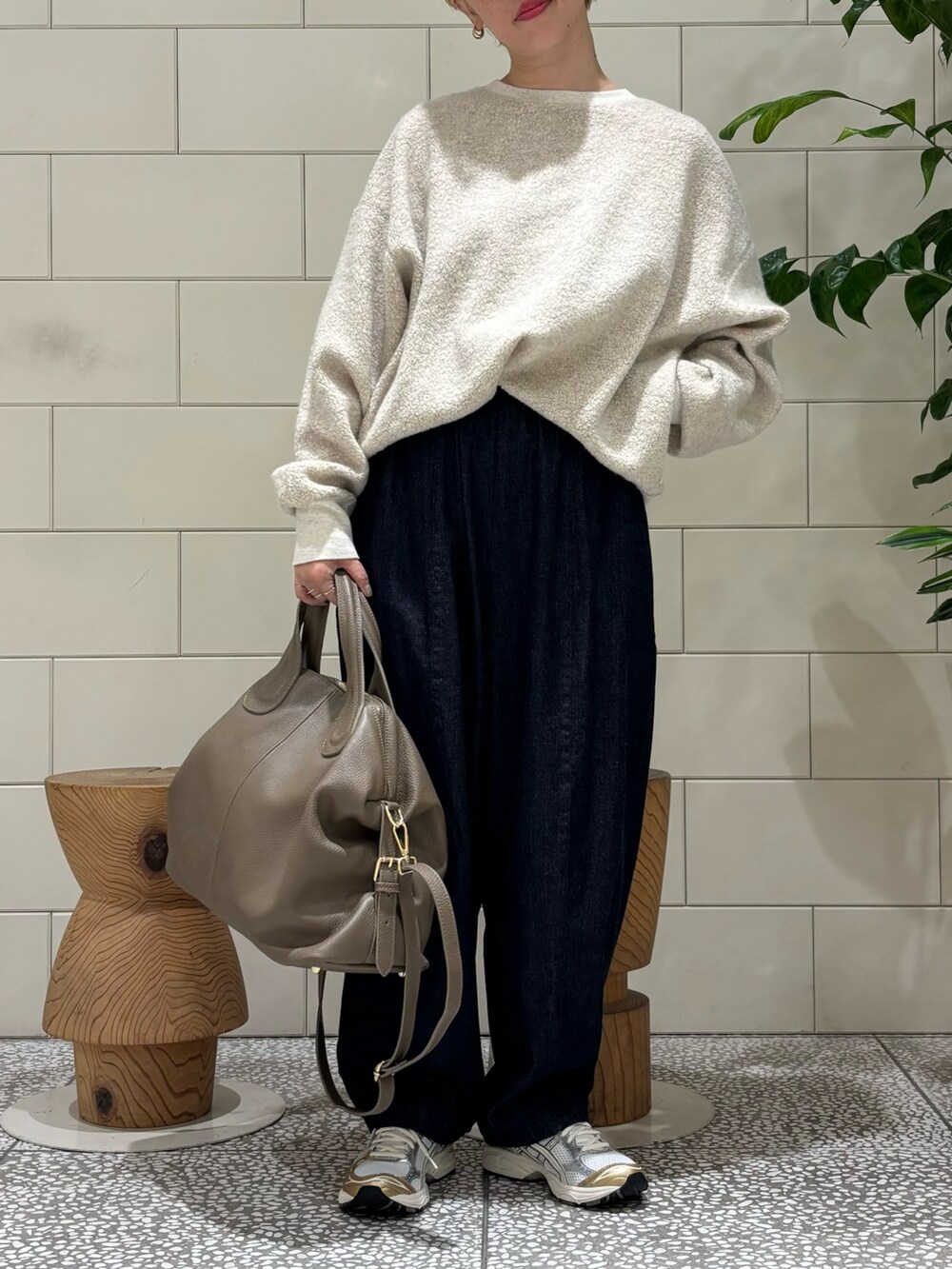 ナチュラルなコーディネートにレザーとスニーカーでアクセントをᨒ𖡼.𖤣