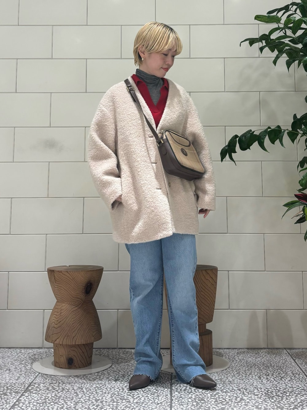 インナーを楽しめるボアコート。