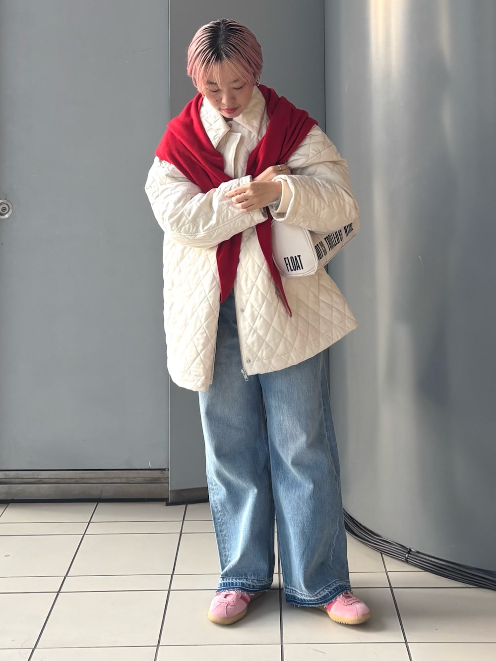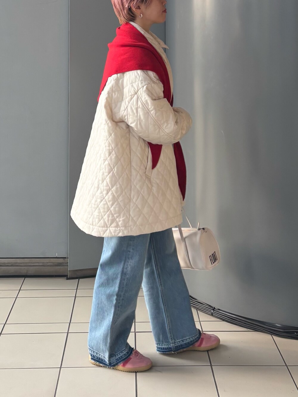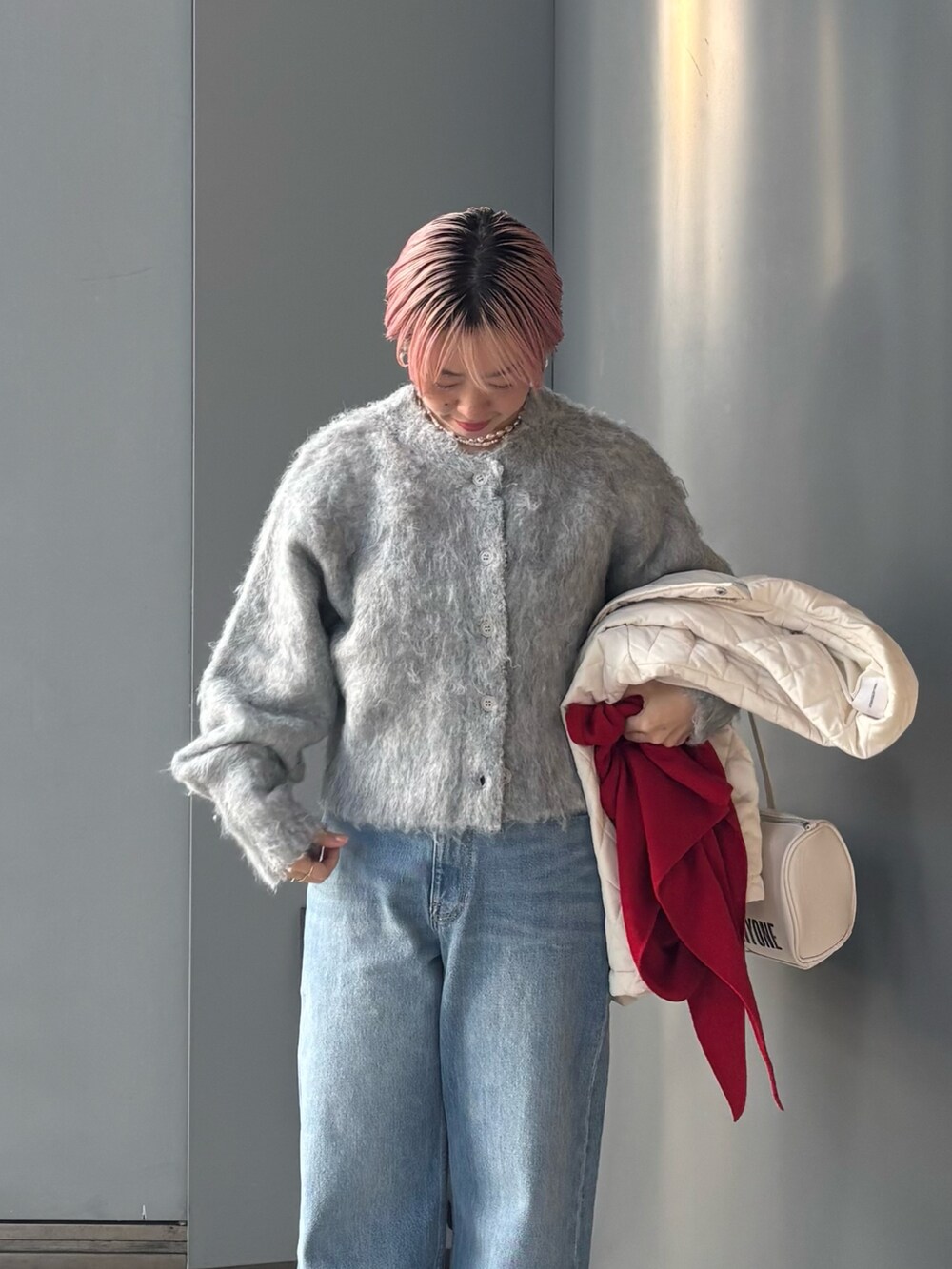 中に着たカーディガンも長い毛足がふわふわで華やかにみせてくれます。