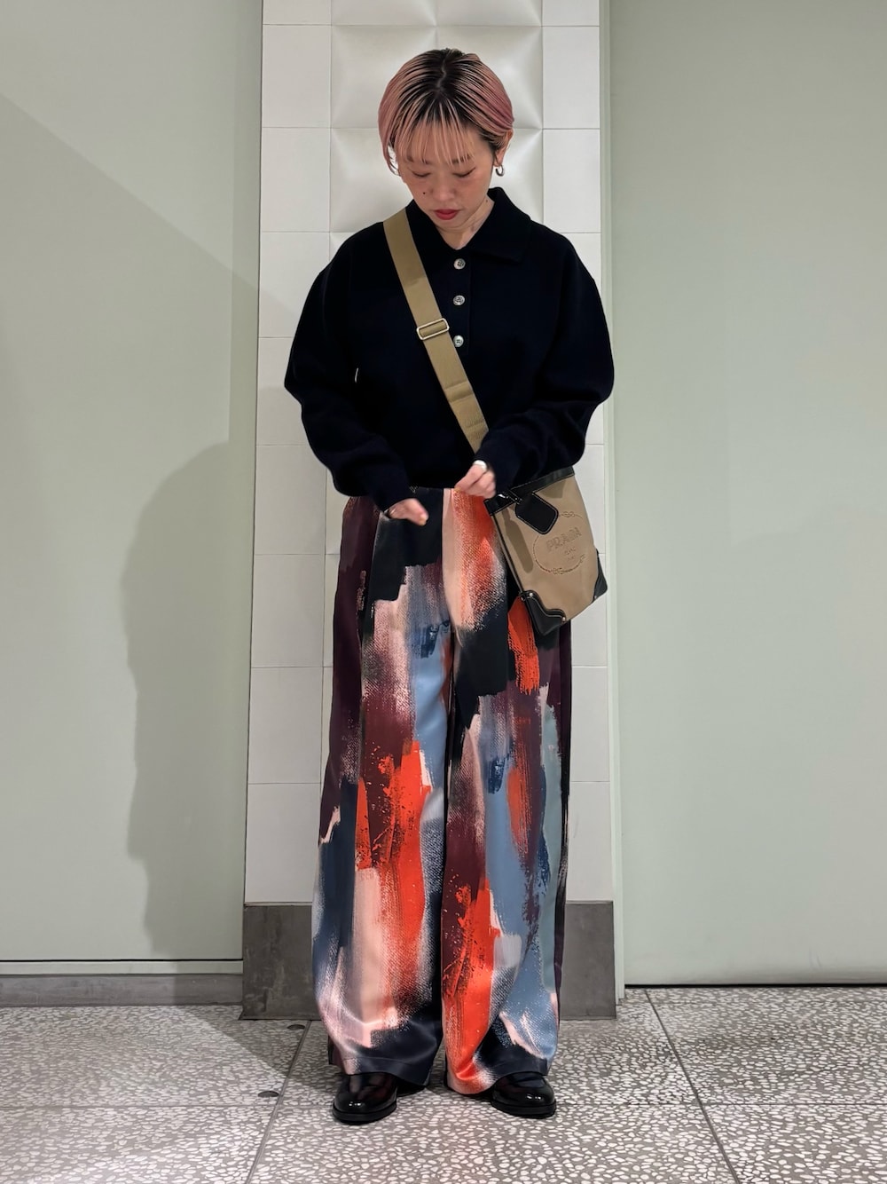 インパクト大なパンツはシンプルなスタイリングを華やかにしてくれます。