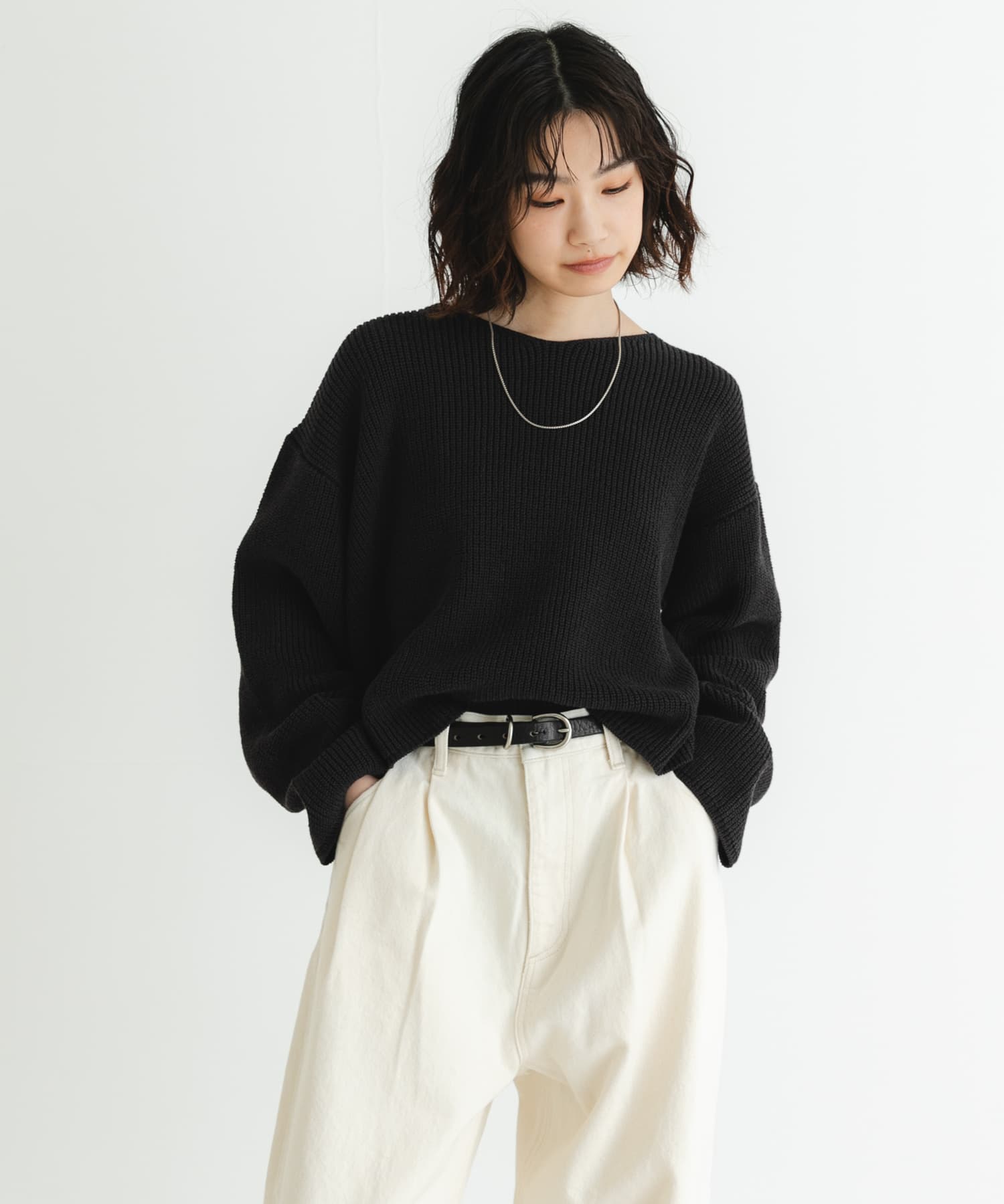 春に着られるサラッとニット。