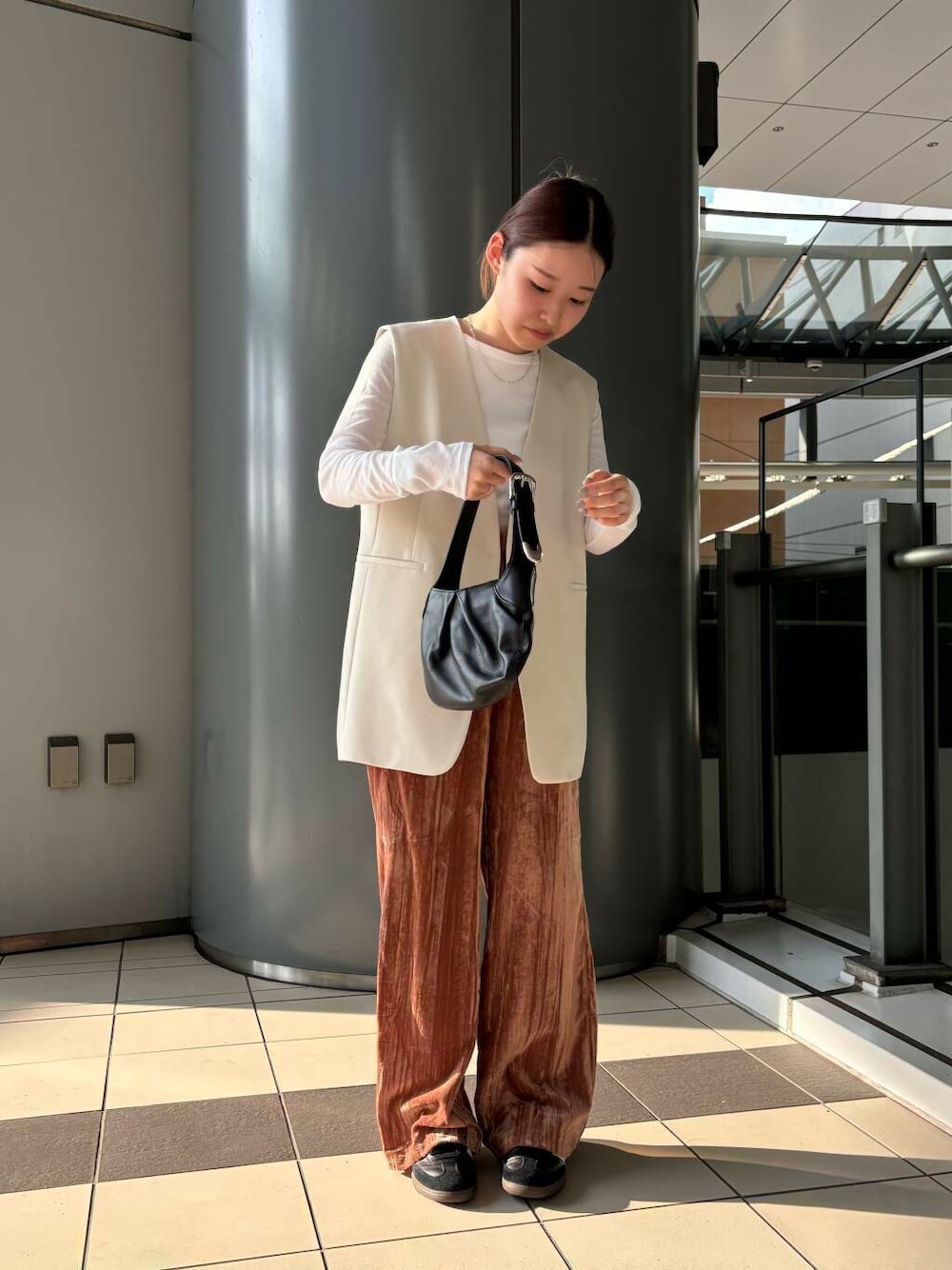 シンプルで使いやすく、これから秋にかけて活躍する一枚です。上にビスチェなどを合わせても