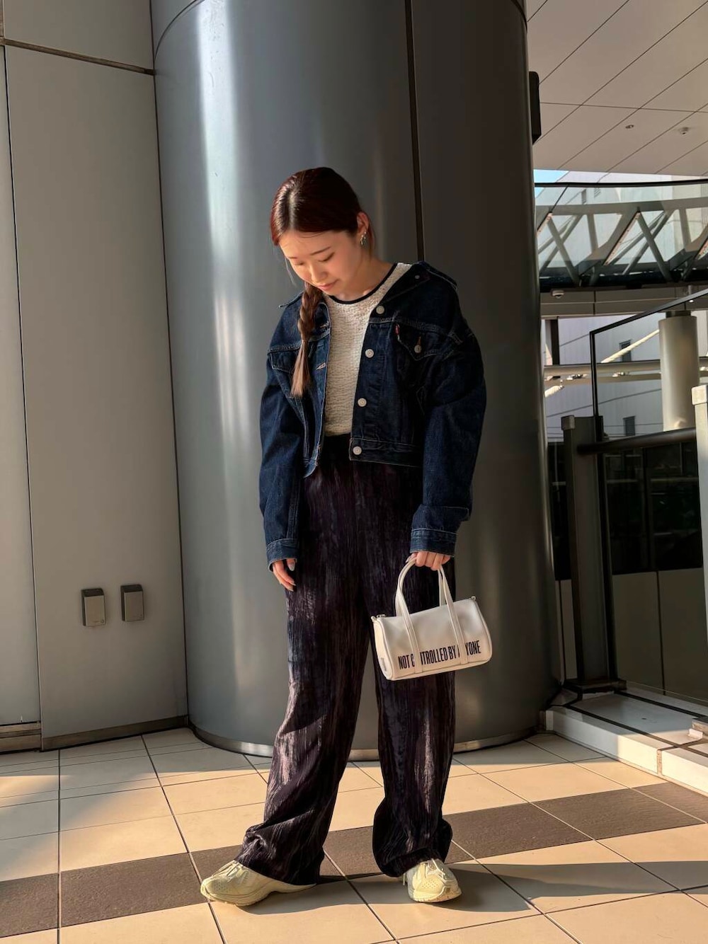 特徴のある生地感でスタイリングのアクセントになります。袖は肘くらいまでになります。丈は長めのお作りです。