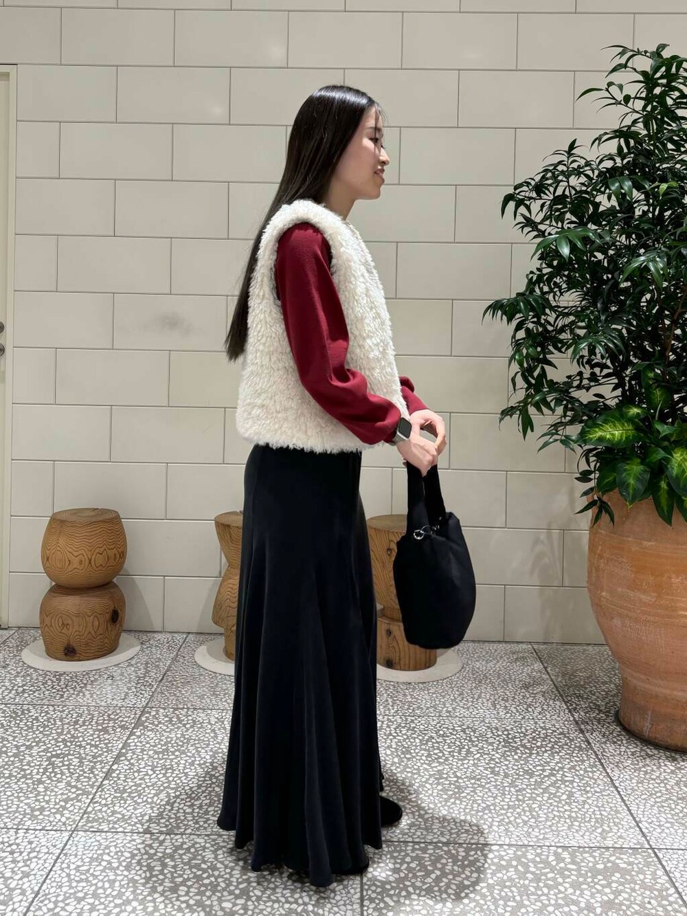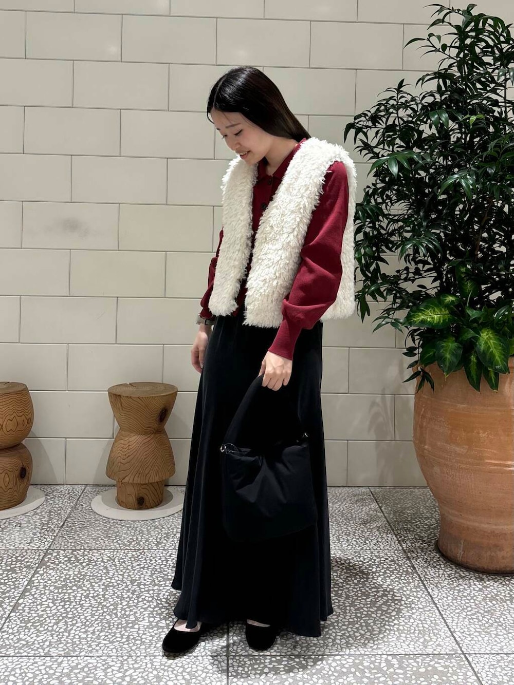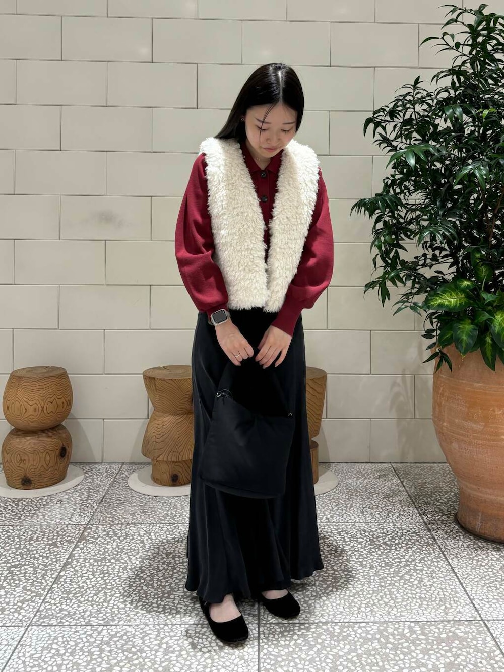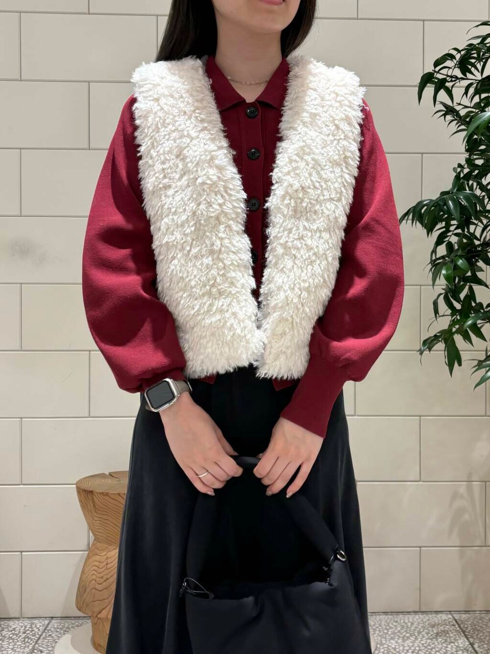 ショート丈でトレンド感のあるアイテムです。フックタイプの留め具で目立ちにくいです。