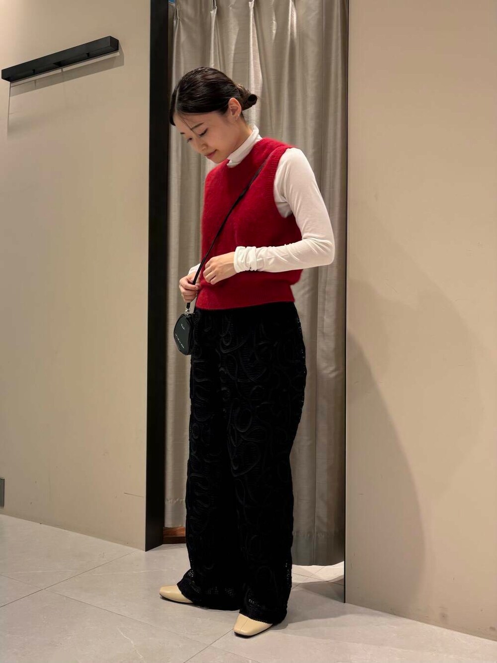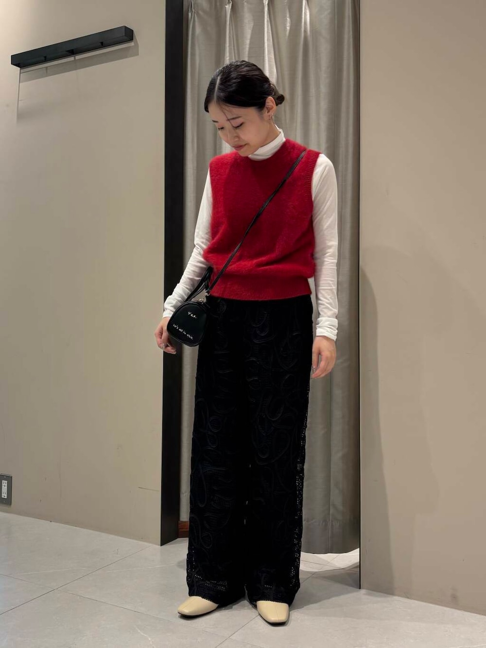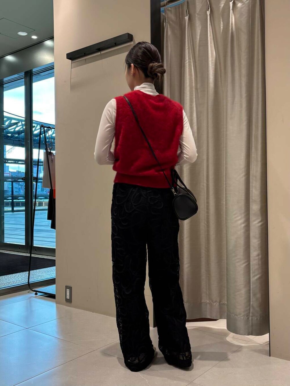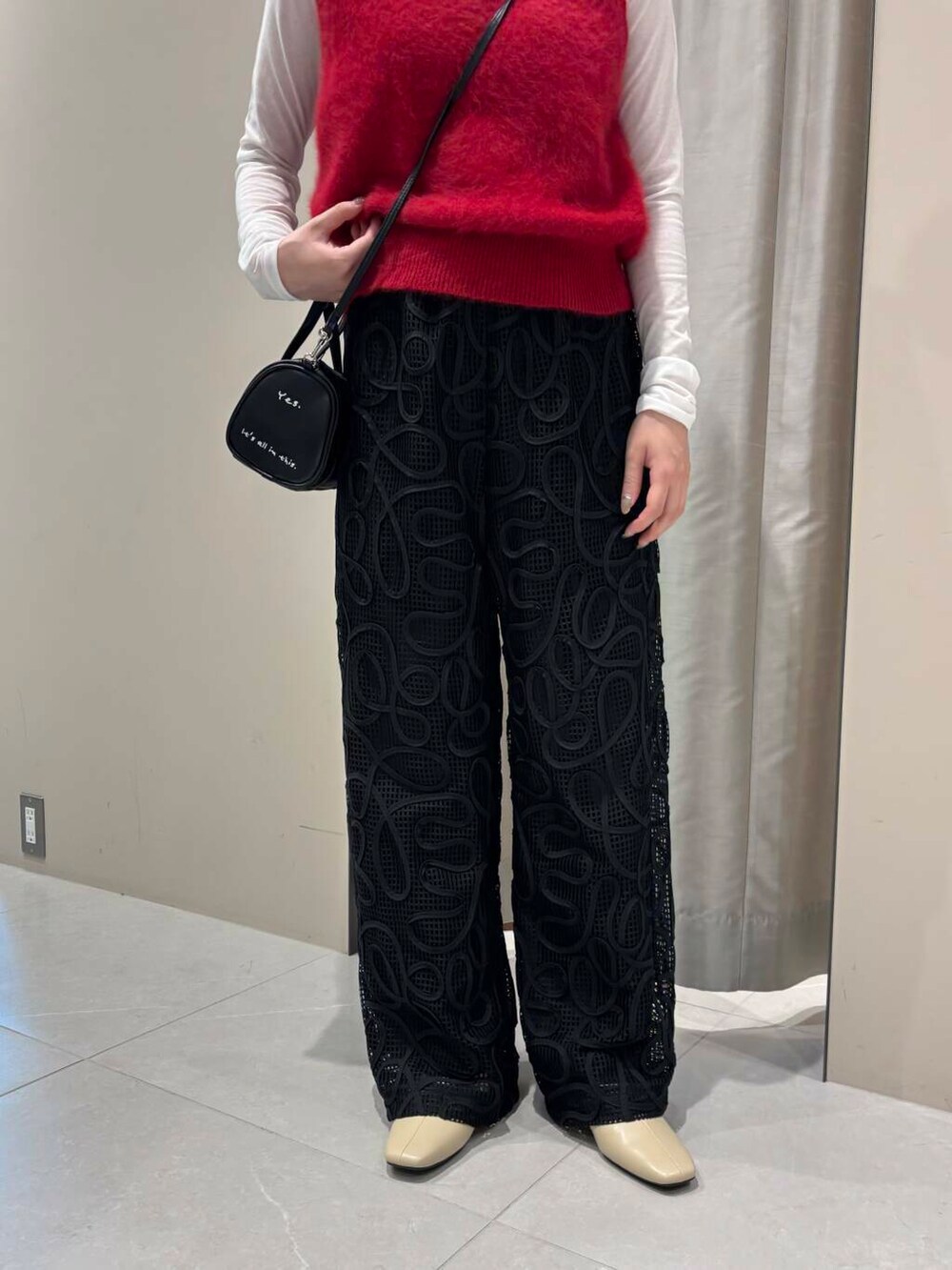 特徴のあるレースがスタイリングのポイントになります。ウエストは紐で調節ができ、全体的にしっかりとした生地で重量感があります。