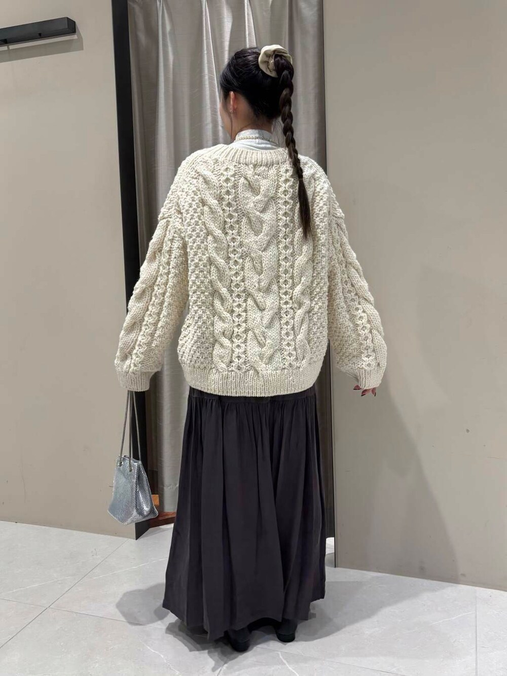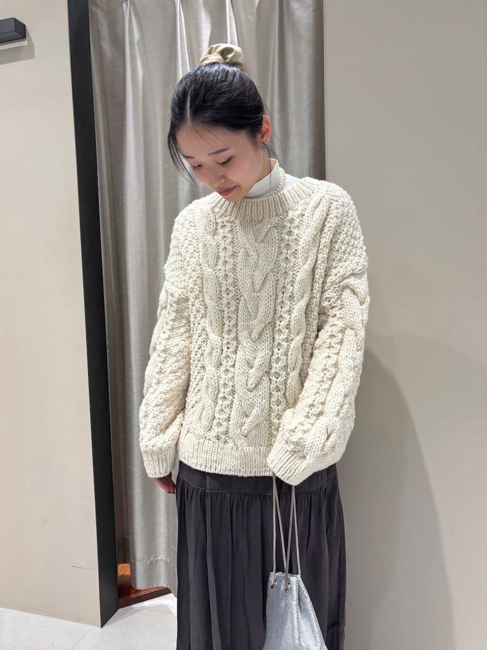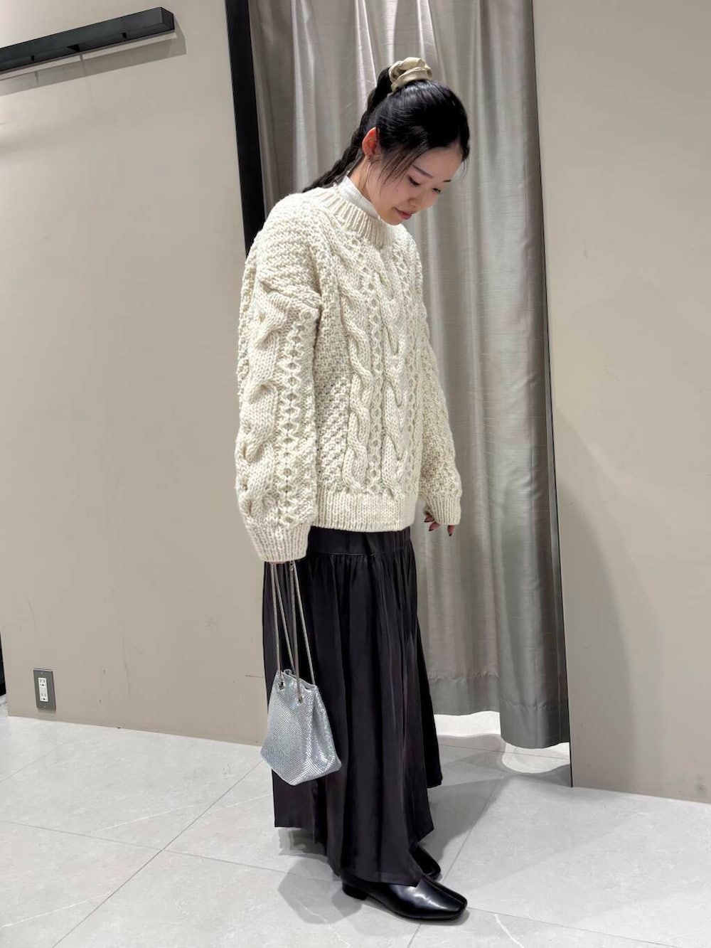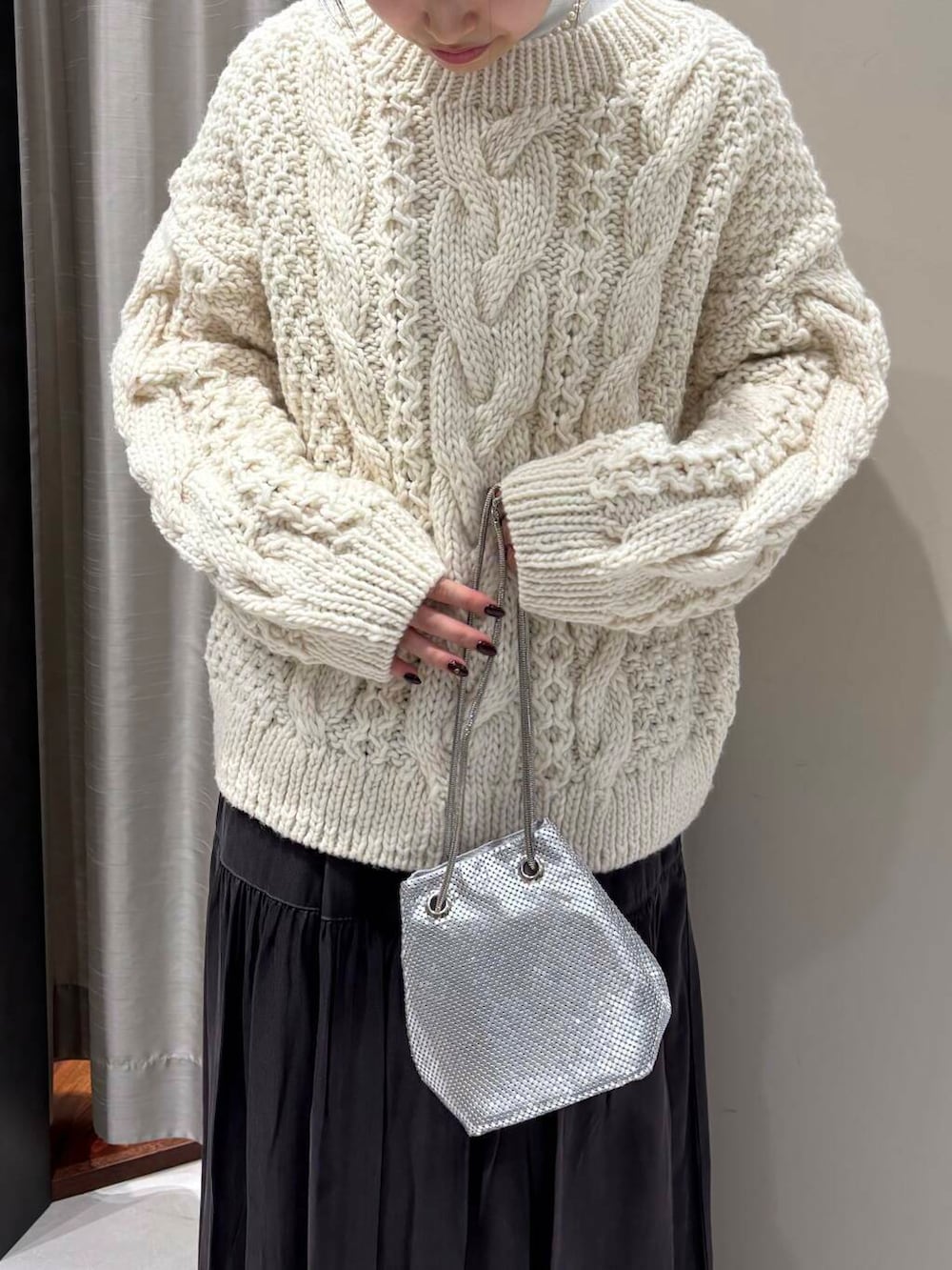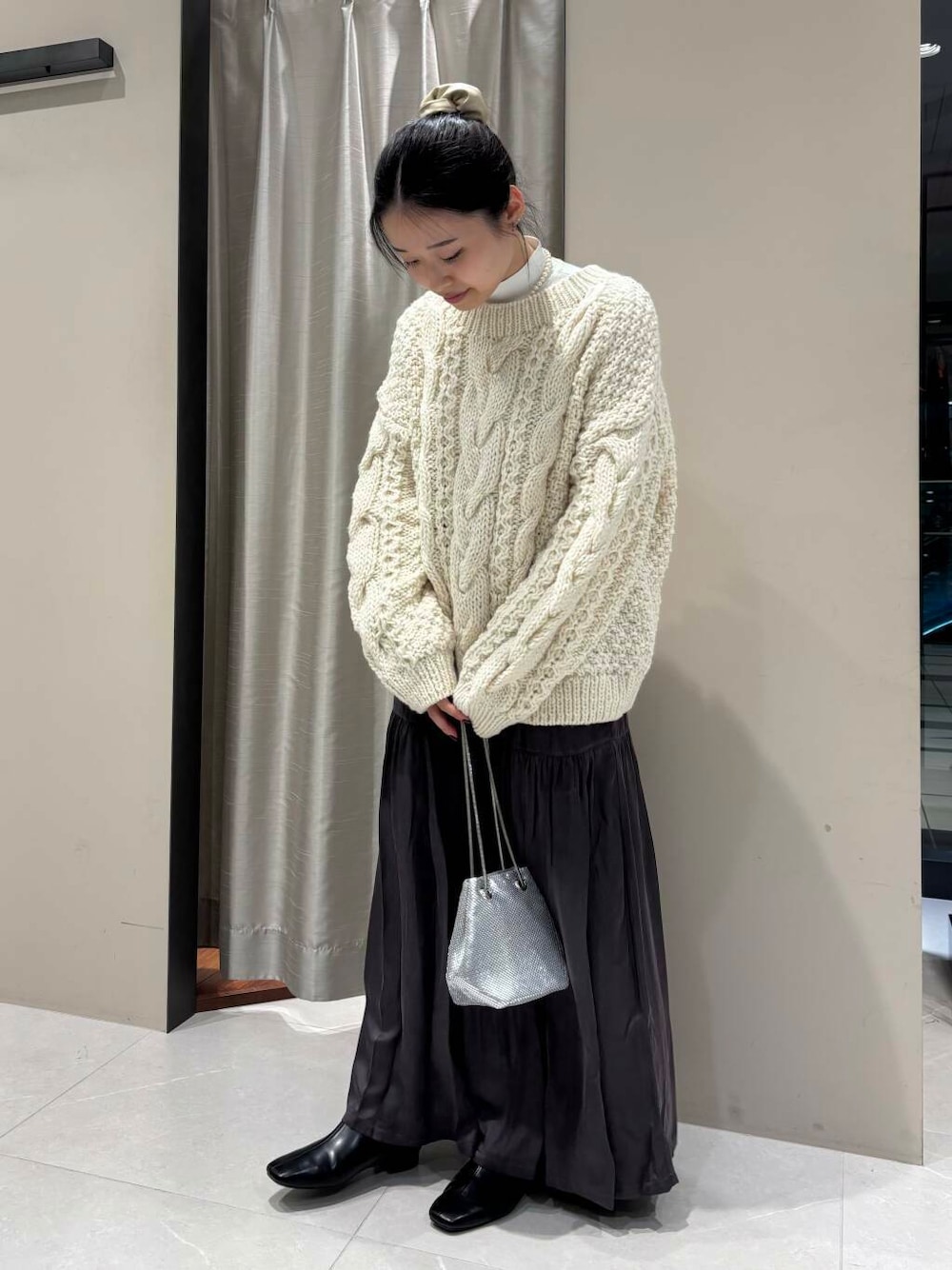 ボリューム感のある主役ニットです。取り入れるだけでスタイリングの主役になります。カラーもののタートルネックを合わせても◎