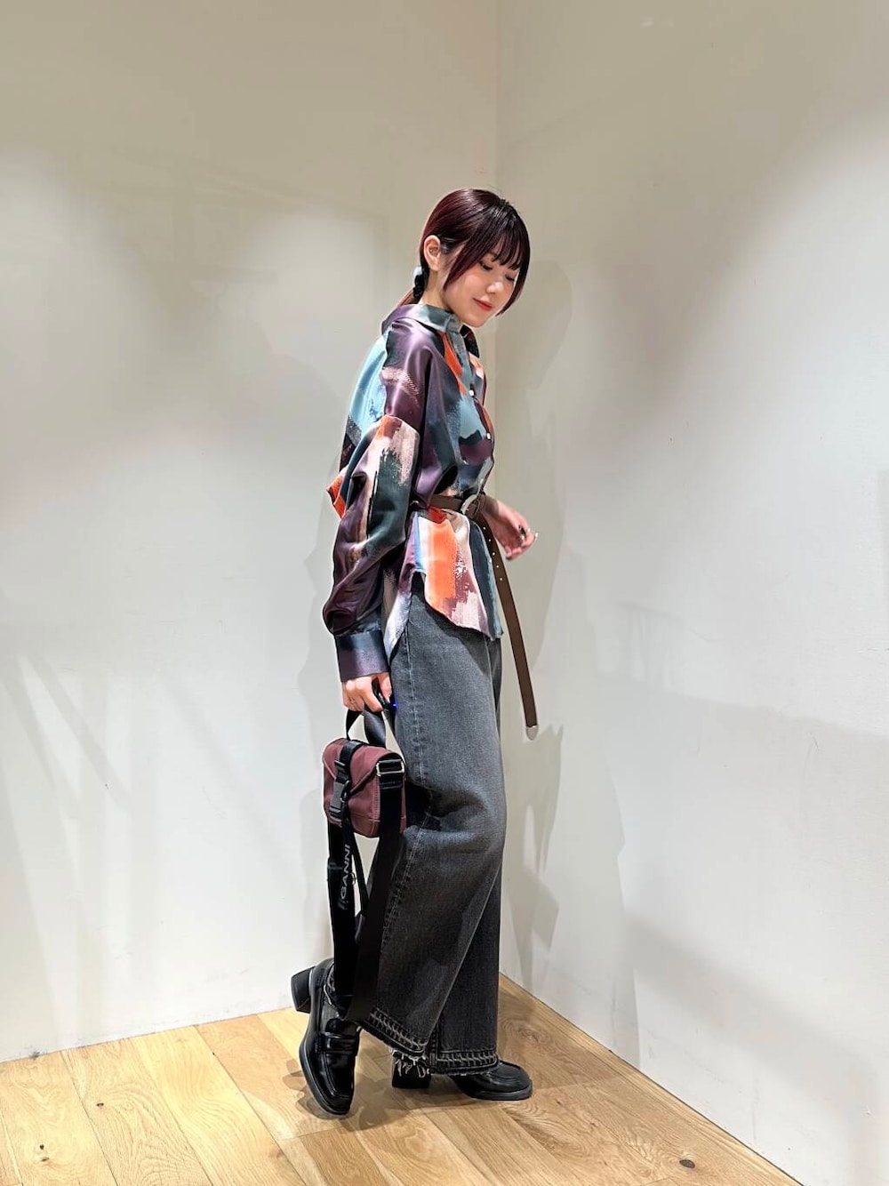 色味があるトップスにはブラックデニムが合わせやすいです♪