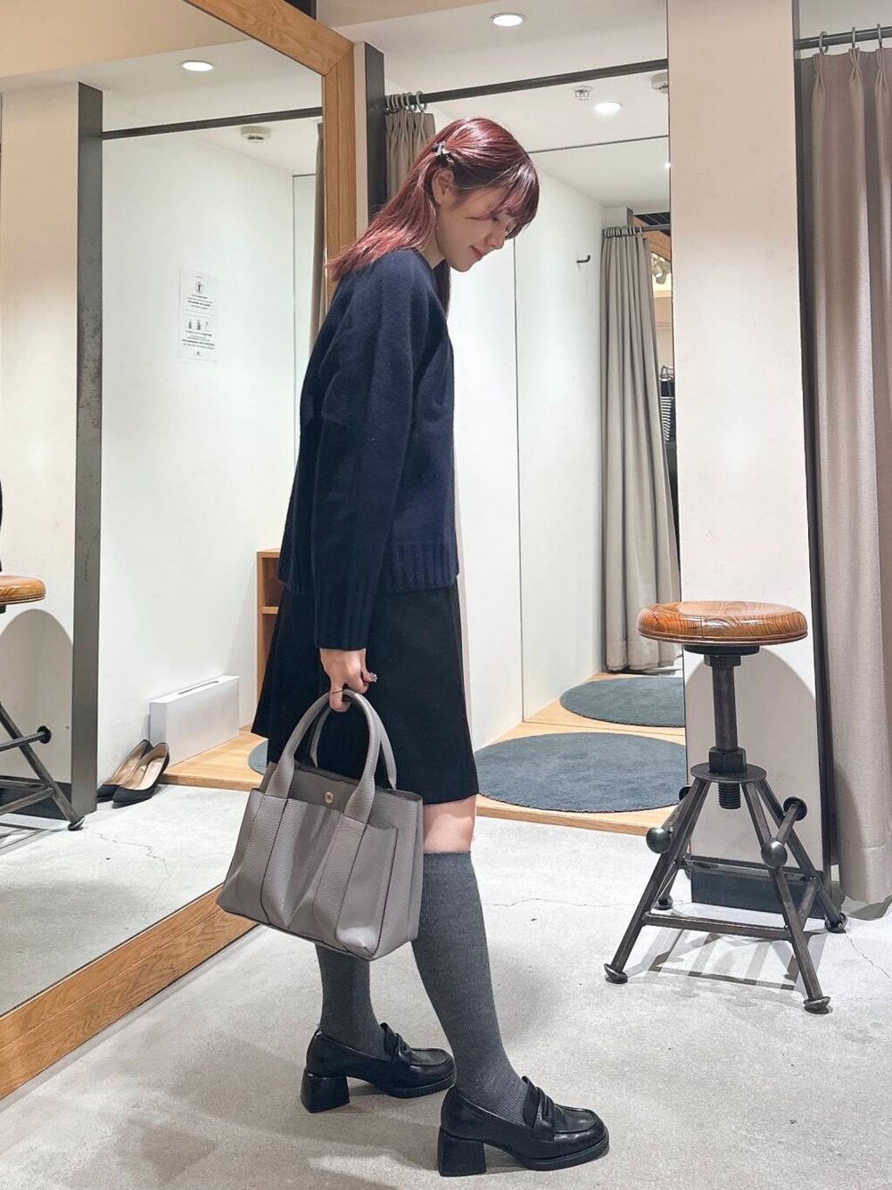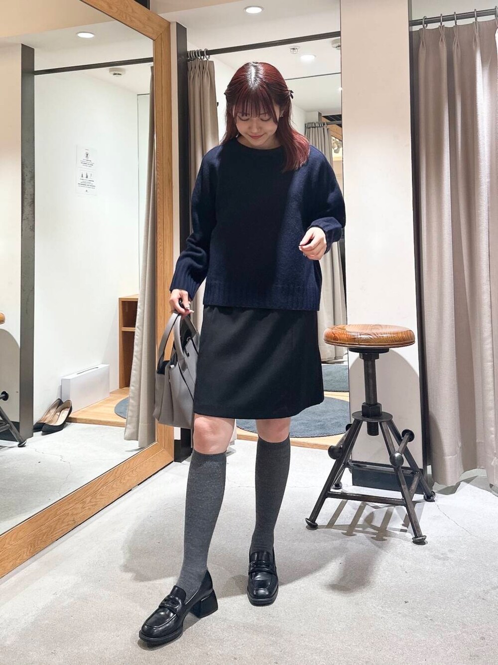 NVY×GRY×BLK で落ち着いた色に統一したのでミニ丈でも可愛らしすぎないようにしました