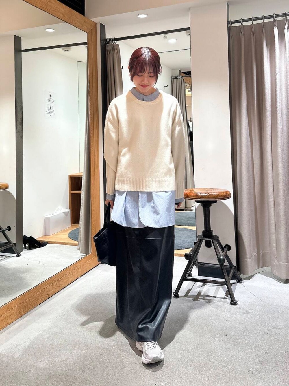 ニットは腰丈なので、中に長めのシャツを合わせるのも可愛いです♡