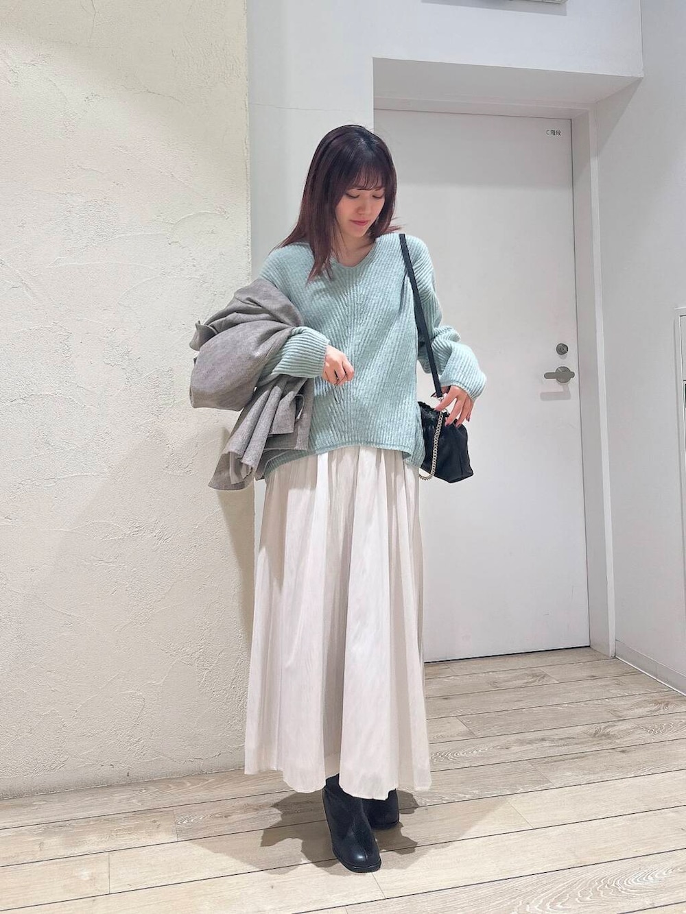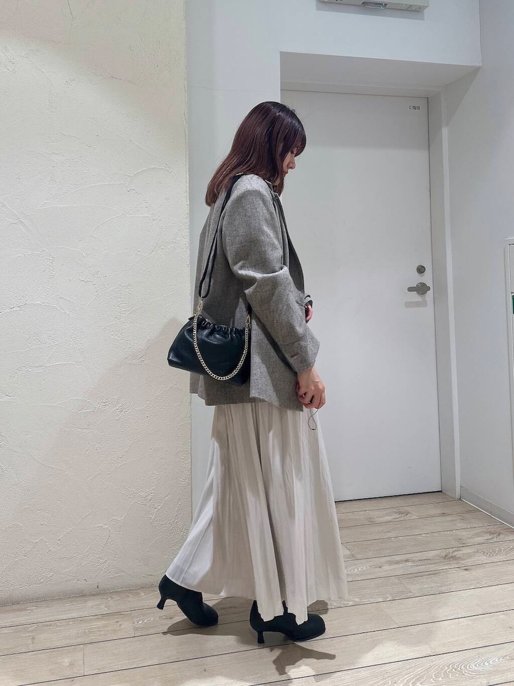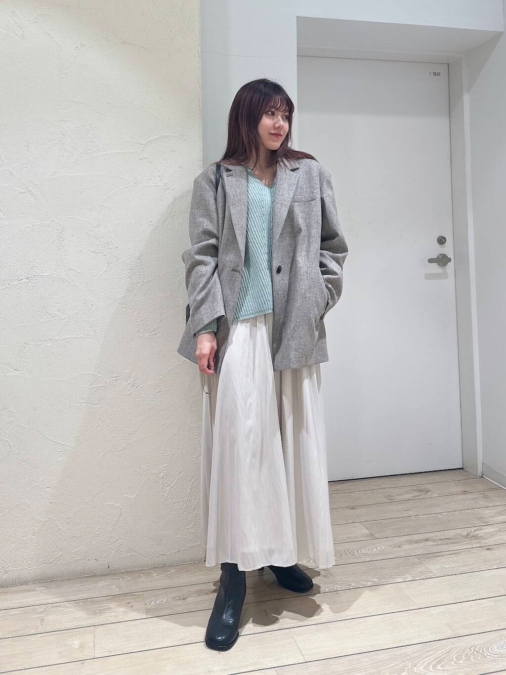 ジャケットはオーバーサイズなのでニット合わせても肩が動かしやすいです◎