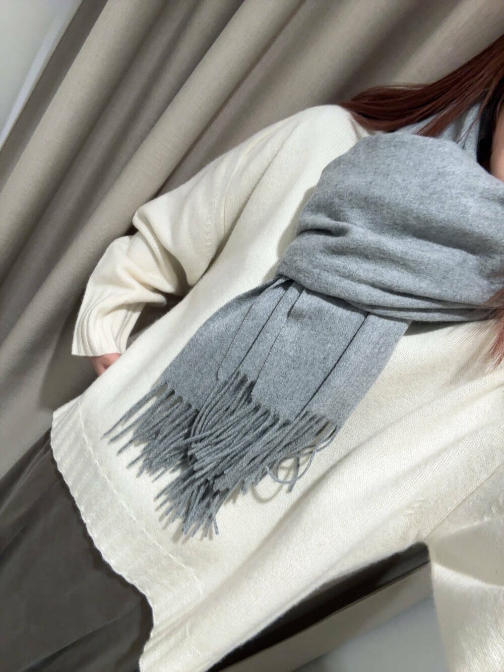 カシミヤ100%なので肌あたりよく、ニットのチクチク感が苦手な方でも使って頂きやすいです